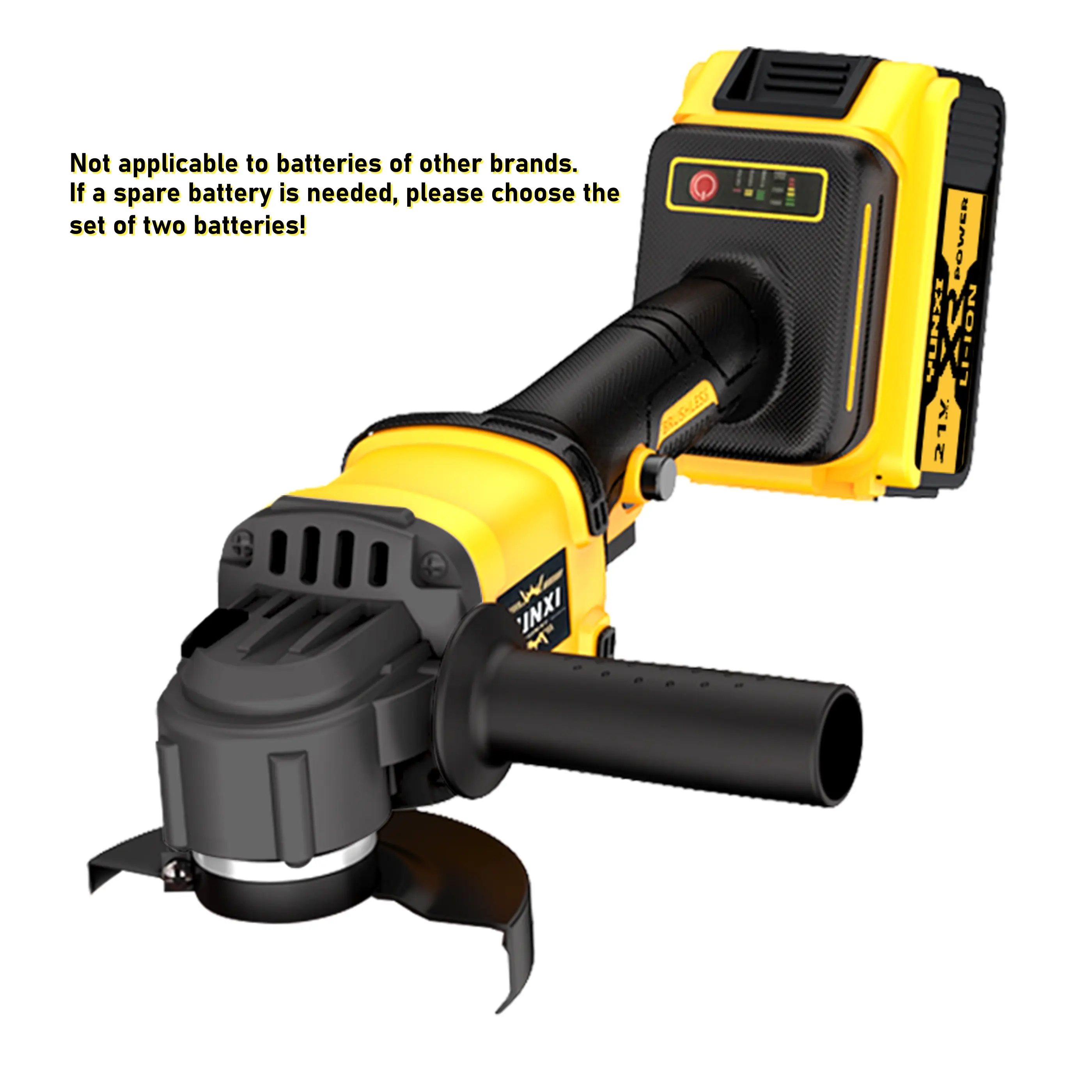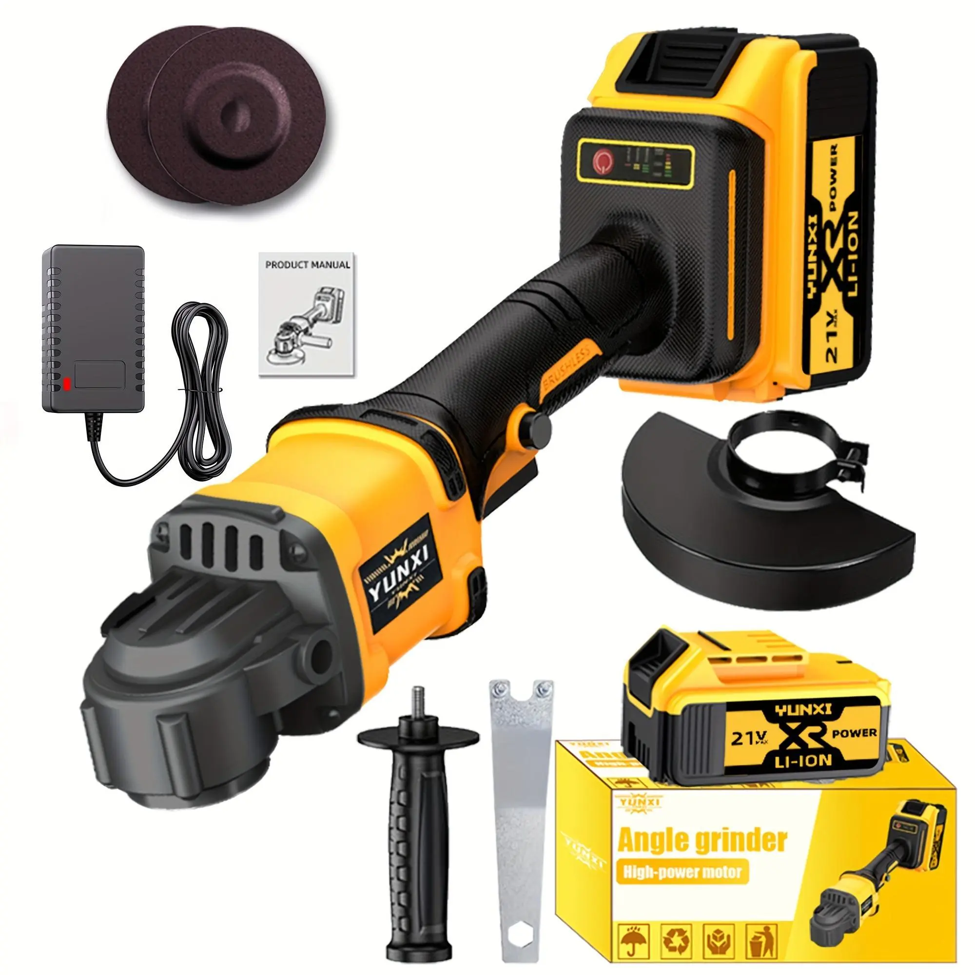 The YUNXI Brushless Motor Cordless Tool comes with a 21V battery and accessories. It features a no load speed of 8300-12000 RPM, making it ideal for ceramic tiles, stones, steel, and wood projects. This pneumatic metal chamfering tool is perfect for brushless cordless angle grinding. 🛠️