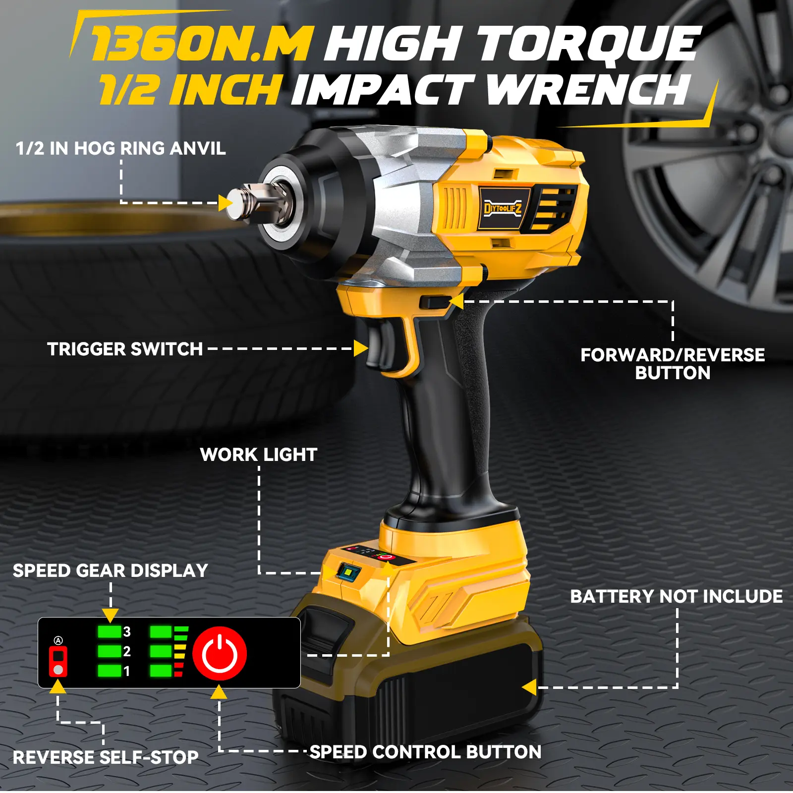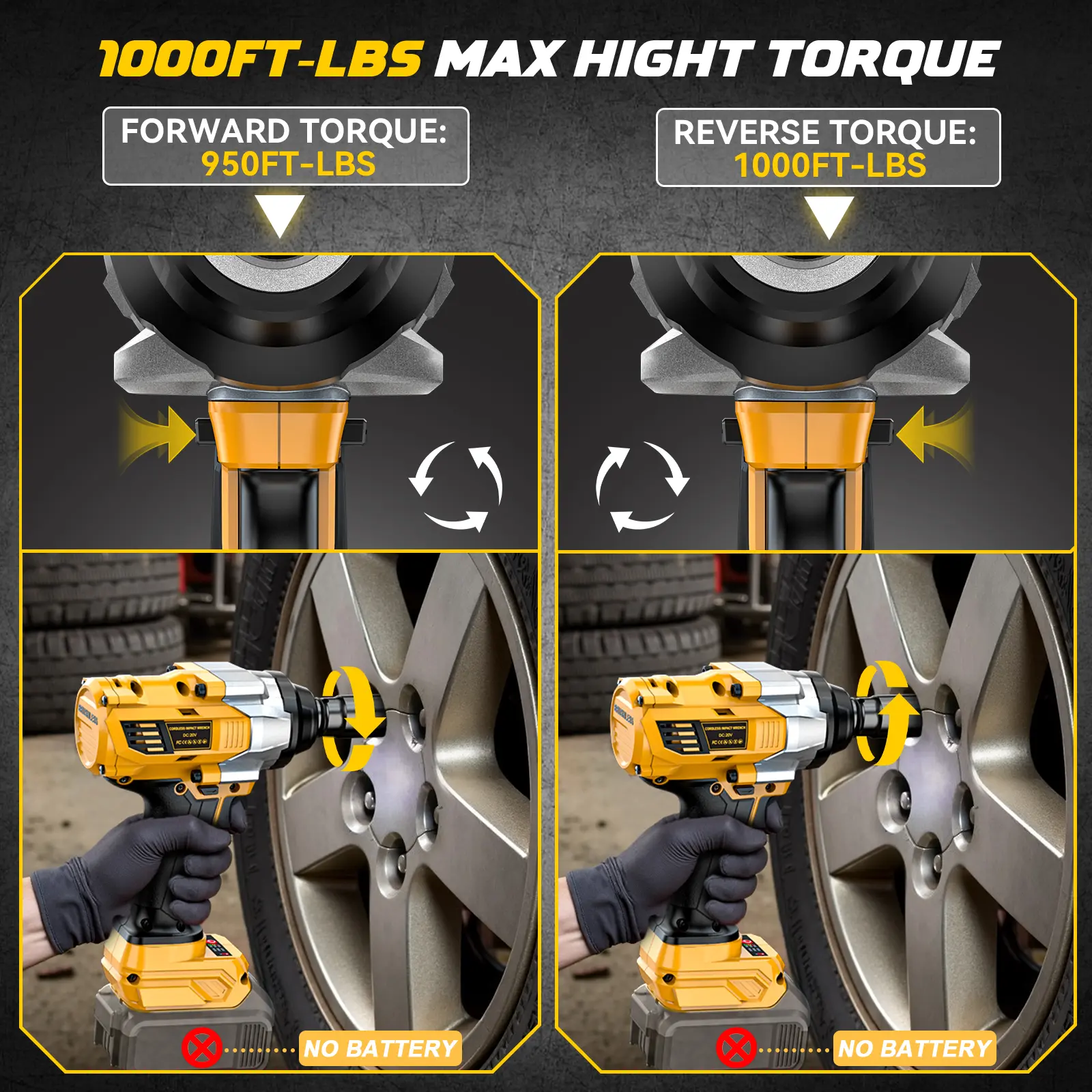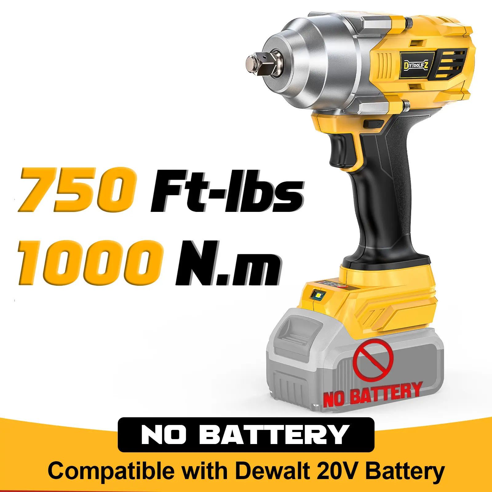 ·This power impact wrenches does NOT INCLUDE any batteries and impact sockets attachment! It is compatible with Dewalt 20V batteries.