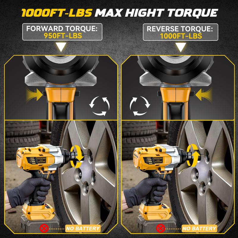 ·BRUSHLESS POWER & TORQUE: Experience cutting-edge efficiency with our 1/2 inch impact wrench. Its advanced brushless motor delivers up to 950ft-lbs tightening torque and 1000ft-lbs loosening torque—ensuring longer runtimes and lower heat buildup. Tightening and loosening fasteners becomes a breeze, saving you time and effort every time.