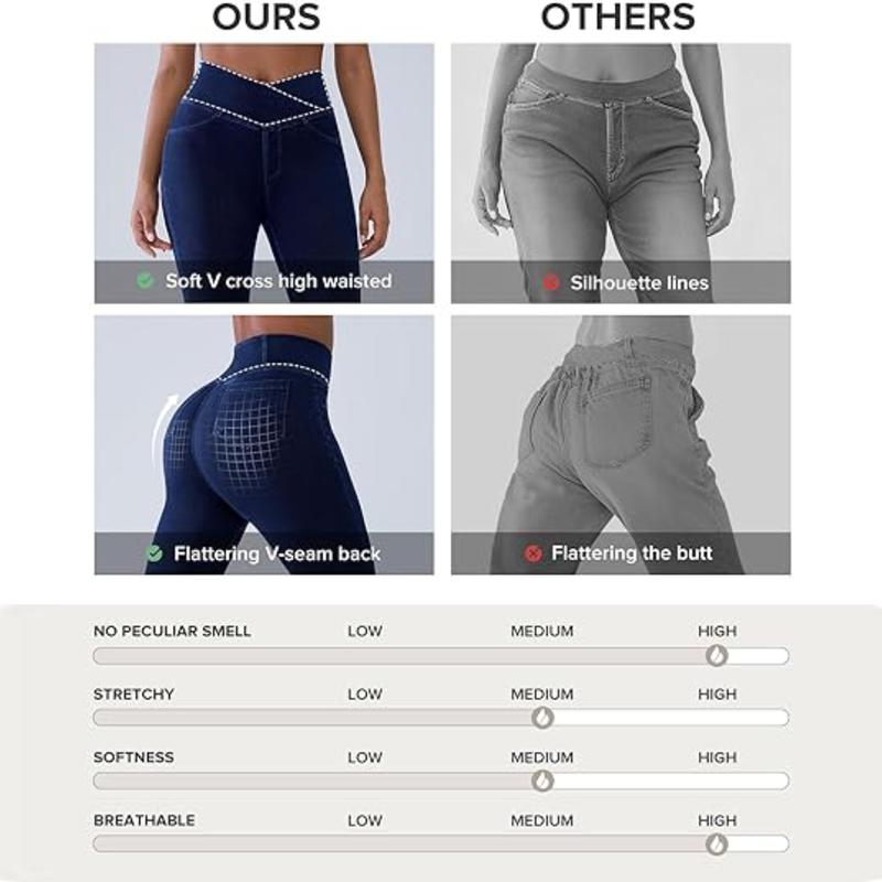 Our jeggings feature a V Cross Waist design, offering tummy control and a high-waisted silhouette. This enhances your curves while concealing your belly. Say goodbye to discomfort and hello to confidence.