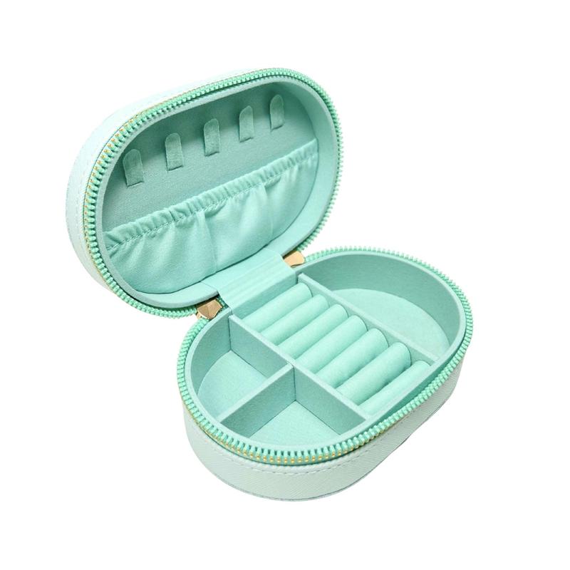 Keep your favorite jewelry safe and stylish with this BT21 Travel Jewelry Case. Compact and functional, this beautifully designed case keeps your everyday pieces neatly organized and tangle free. It's the perfect size for a weekend trip or anytime you want to travel light with just your most-loved pieces. Interior sections make it easy to store rings, earrings, and necklaces in one place. Why We Love It : BT21 Natural Garden Design Faux Saffiano Leather Green Zipper Pull 3 Divided Compartments 8 Slot Ring Holder 5 Hooks Interior Slip Pocket Overall (Width x Height x Depth) 10 x 7 x 6.5" in.