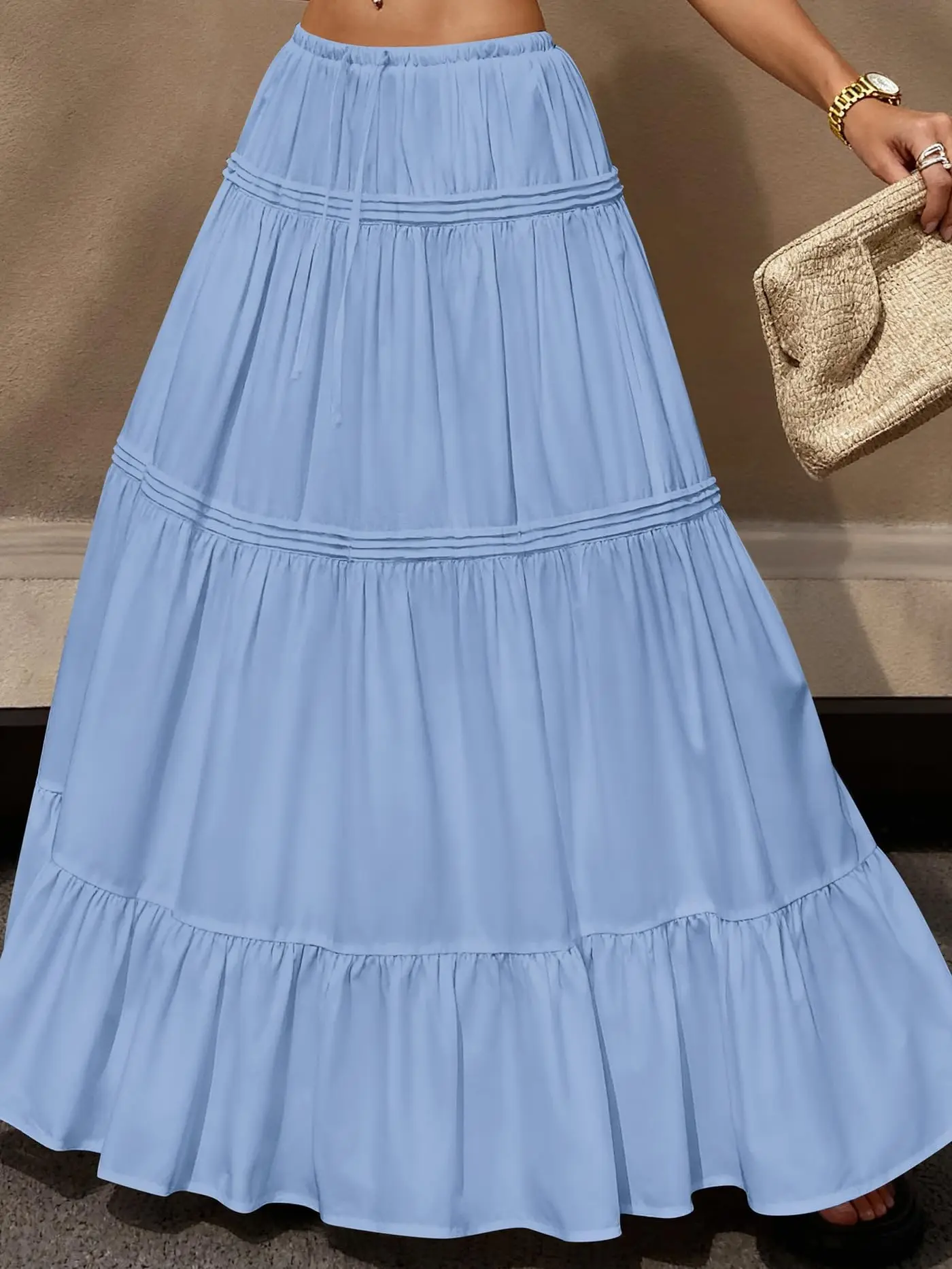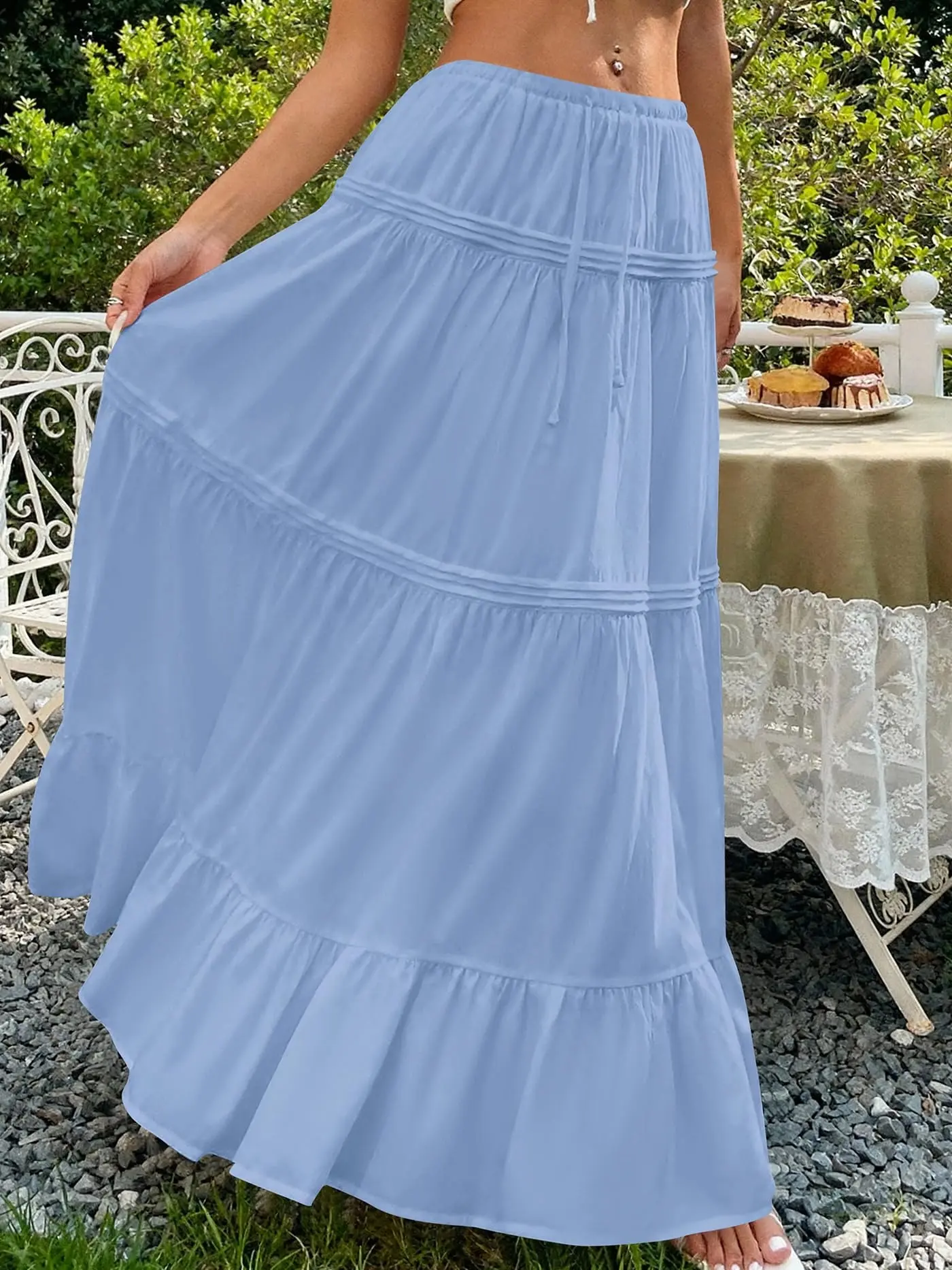 5. BTFBM Skirts for Women 2026 Summer Boho Beach Vacation Clothes Casual Pleated High Waisted Flowy Maxi Skirt