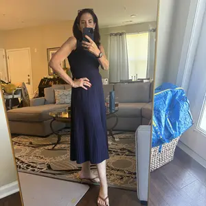 I LOVE this dress! I have it in the sky blue color and that one stands out a bit more than this dark color but this dress is classic. Comfortable & will become a staple. Easy for work to date night.