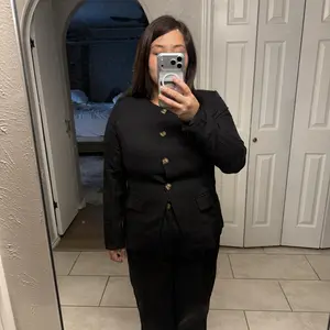 Love the look of this suit & fits TTS. However, there is a defect w/ bustling that happens on the bottom near the pockets. It’s the same for 2 colors I purchased & I can notice it now on all the videos posted in TT. I’m going to have to take them to a tailor. Shown in my video here: