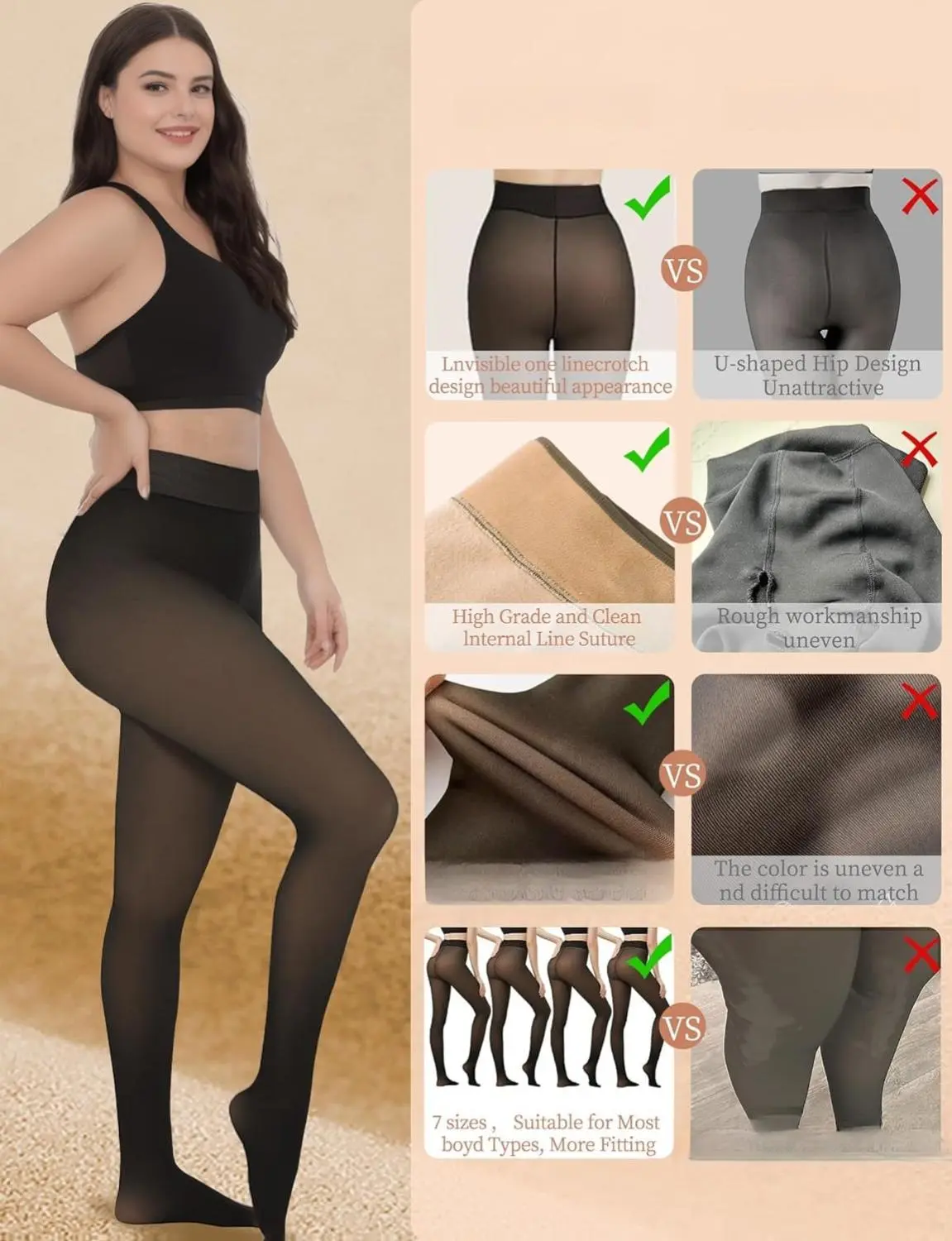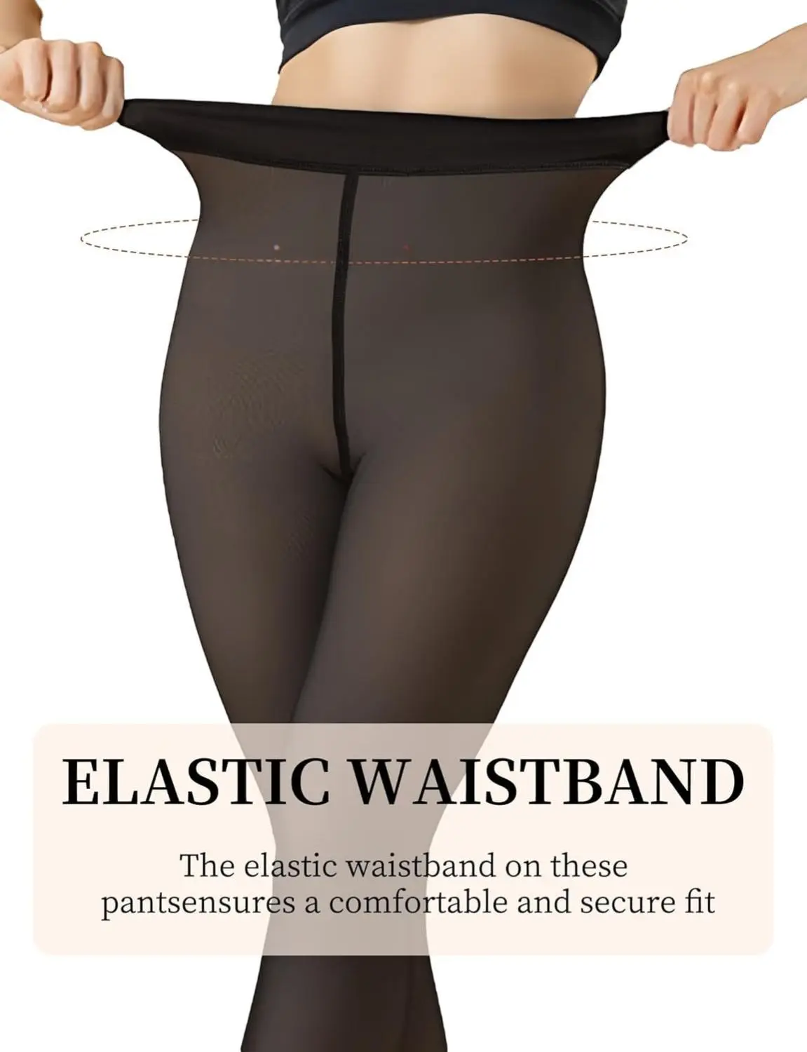 These tights are made from 75% Polyester, 14% Polyamide, and 11% Spandex. This combination ensures a comfortable and flexible fit. The material provides warmth and flexibility, perfect for winter wear. The sheer, fleece-lined thermal leggings are ideal for cold weather. The sheer design allows for layering, while the fleece lining adds extra warmth.