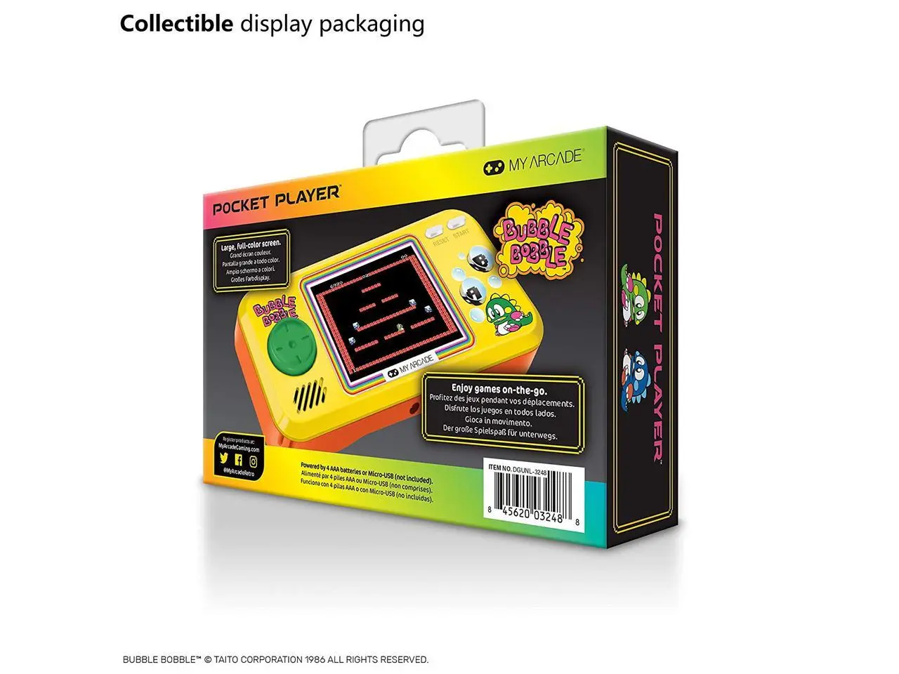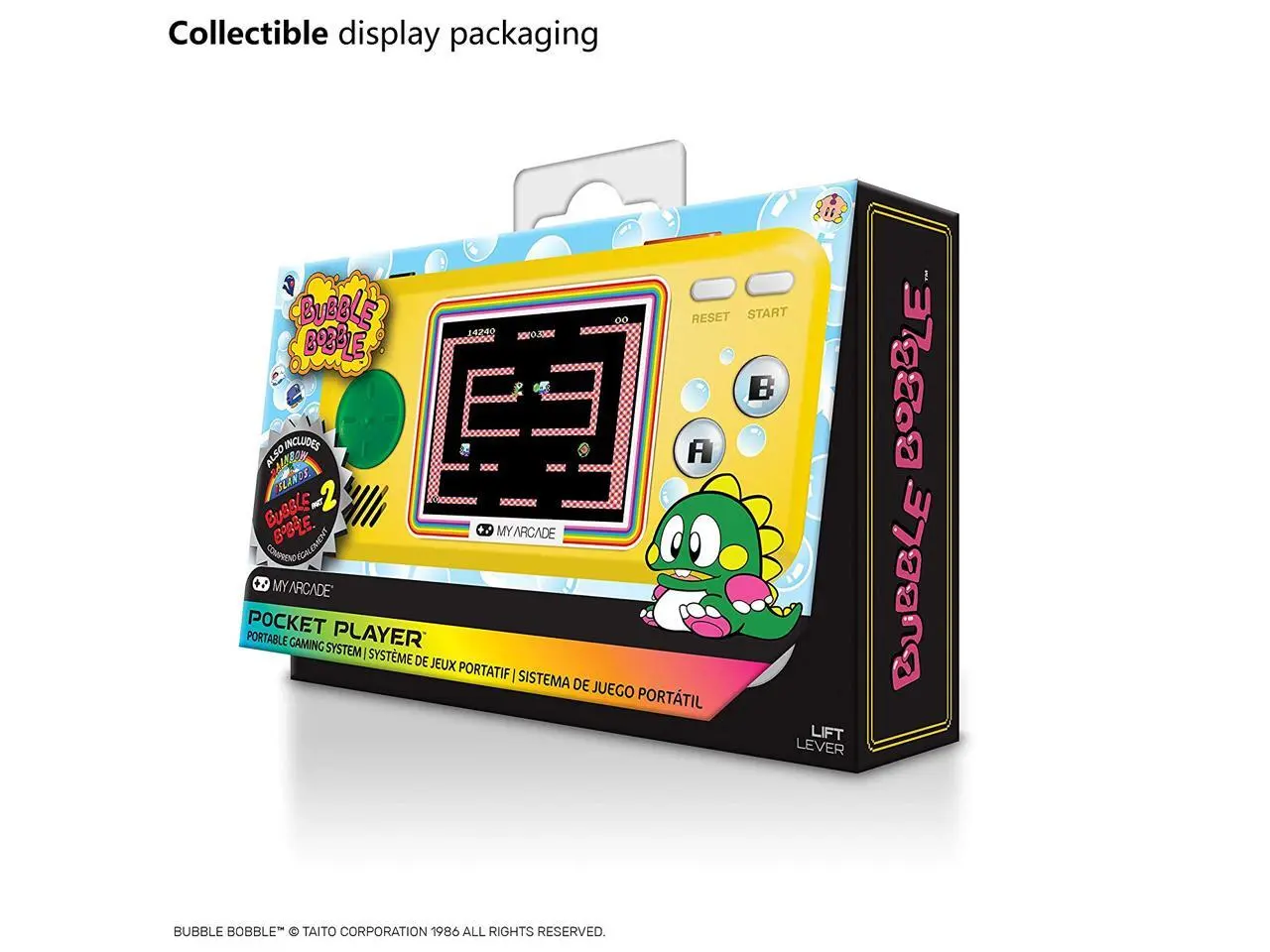 Grab your Bubble Bobble Pocket Player today and start popping bubbles and chasing rainbows wherever life takes you!