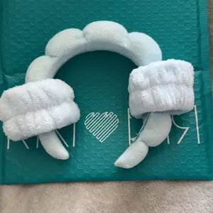 Cute headband you can use to keep your hair back while doing makeup & wristbands to keep water from dripping down hands when washing face.