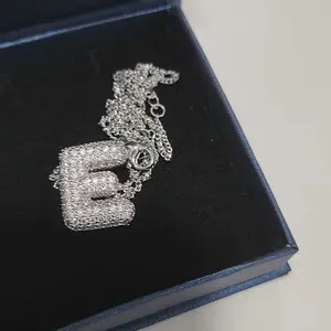 Presenting our exquisite Bubble Initial Letter Necklace, adorned with shimmering cubic zirconia. This eye-catching accessory is perfect for adding a touch of sophistication and personal flair to any outfit. Featuring a beautifully crafted initial letter charm encased in a delicate bubble design, this necklace is both stylish and meaningful.