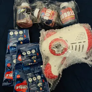 I love this product. It is neatly packaged. Everything is there. It comes as described. My niece and nephew will love the toy that they receive. I am so excited. I got such a great deal on this bubble machine is comes with four bubbles and you can refill the bubbles when yourun out sokeep thebottles
