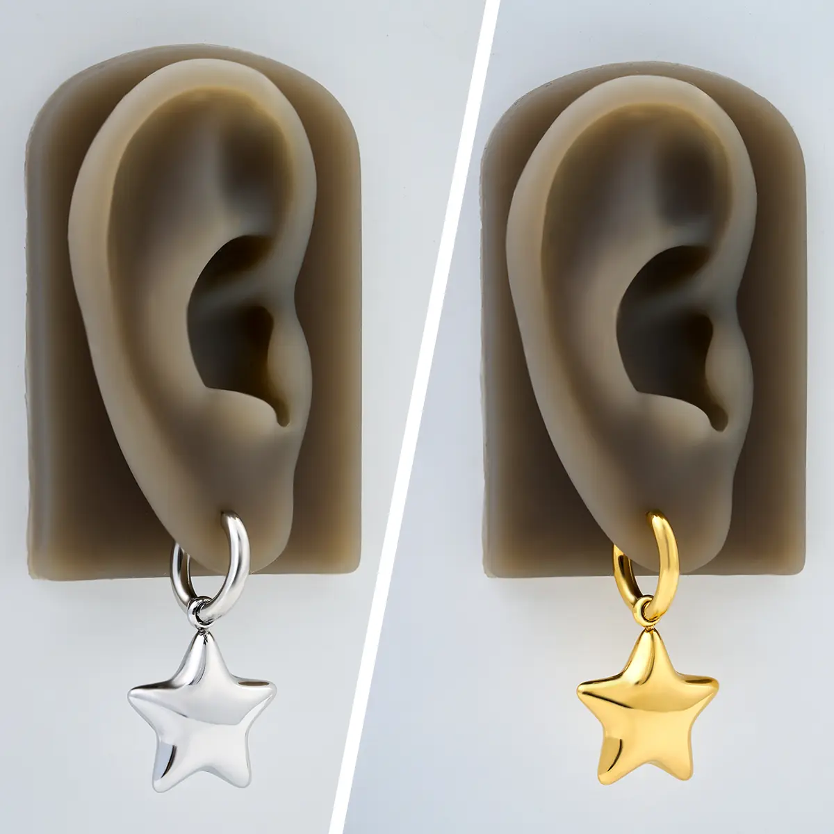 Broke immediately! The clasp is so hard to open, and in the process of struggling to remove one of these, the star snapped off, and the hoop is still stuck in my ear as we speak.