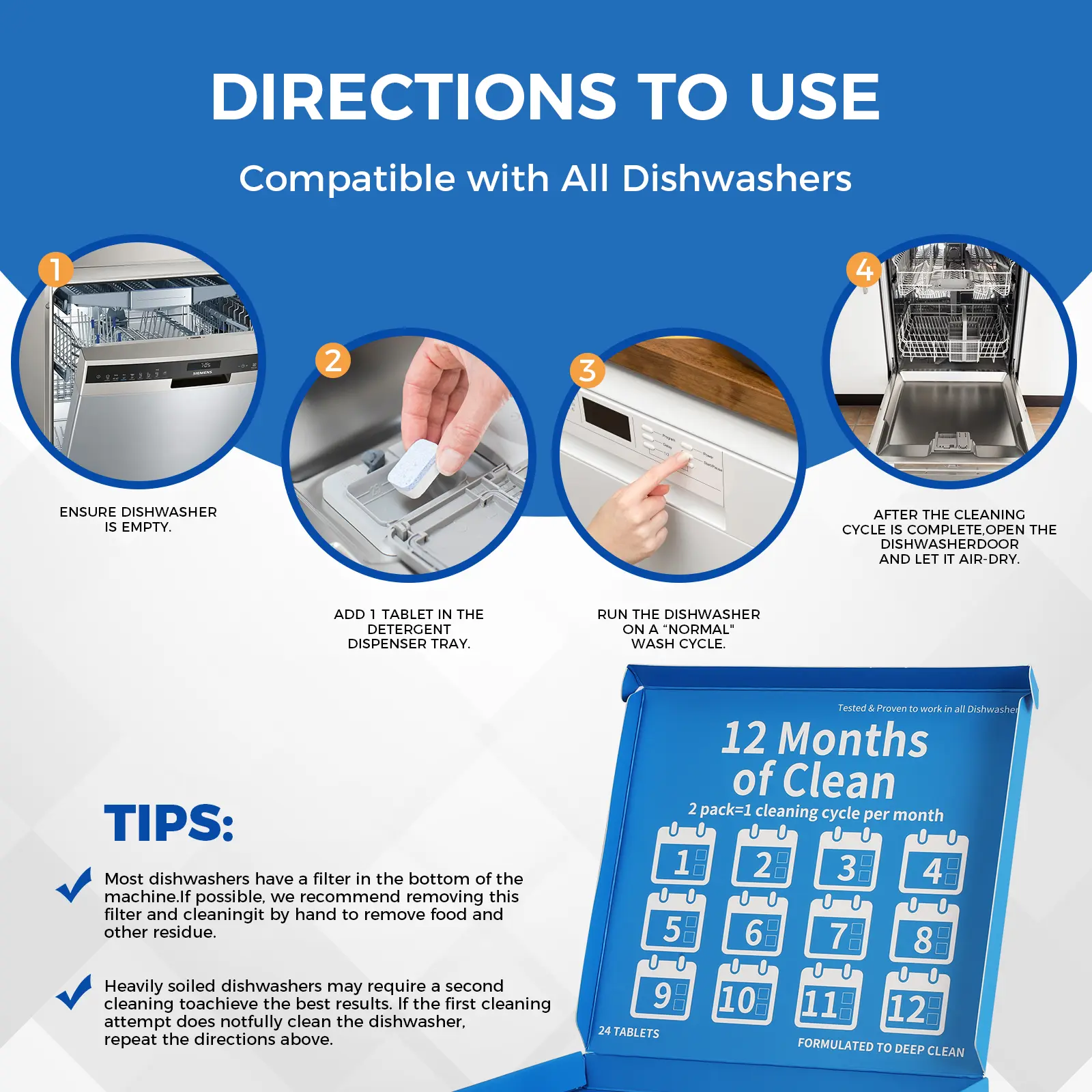 🌟 BUBCLEAN Dishwasher Cleaner 24 Tablets 🌟