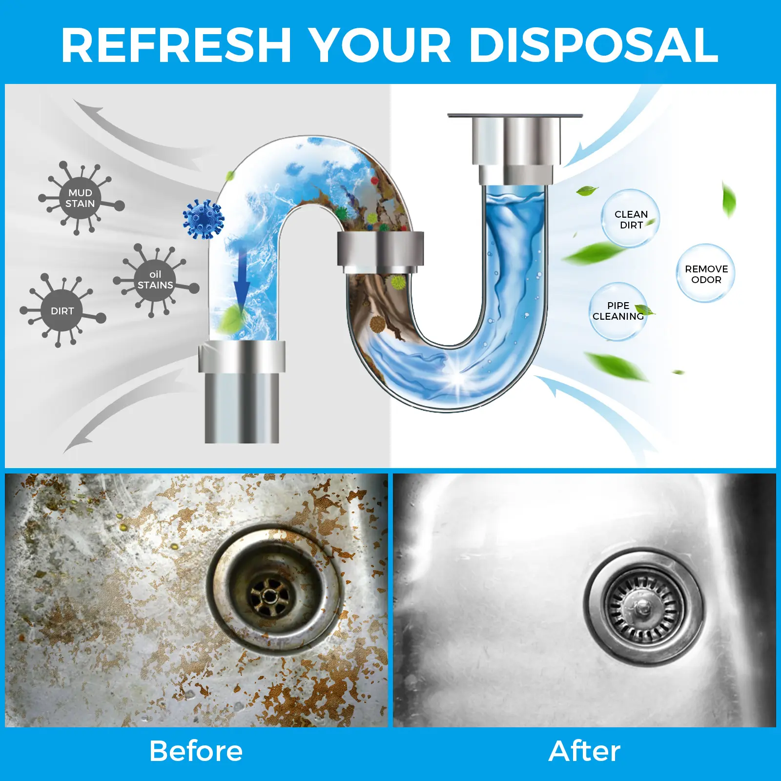 Finally found a solution for that mysterious damp smell coming from the drain! This cleaner works wonders on hidden gunk and bacteria. The sink is thoroughly cleaned and truly odor-free now. Love it!