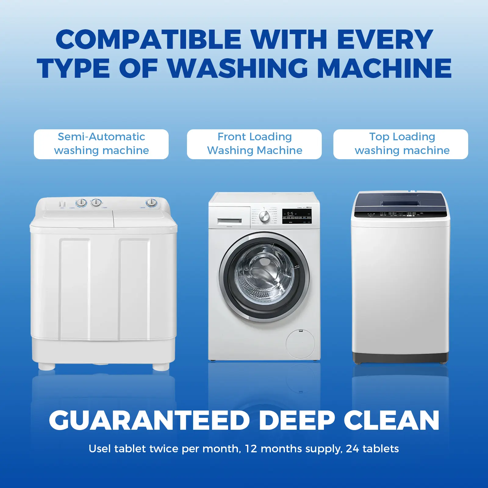 【Works With All Washers】BUBCLEAN washing machine cleaner works perfectly with both front-loading and top-loading washing machines, including high-efficiency (HE) washing machines, so you don't have to worry about the type or brand of your washing machine.