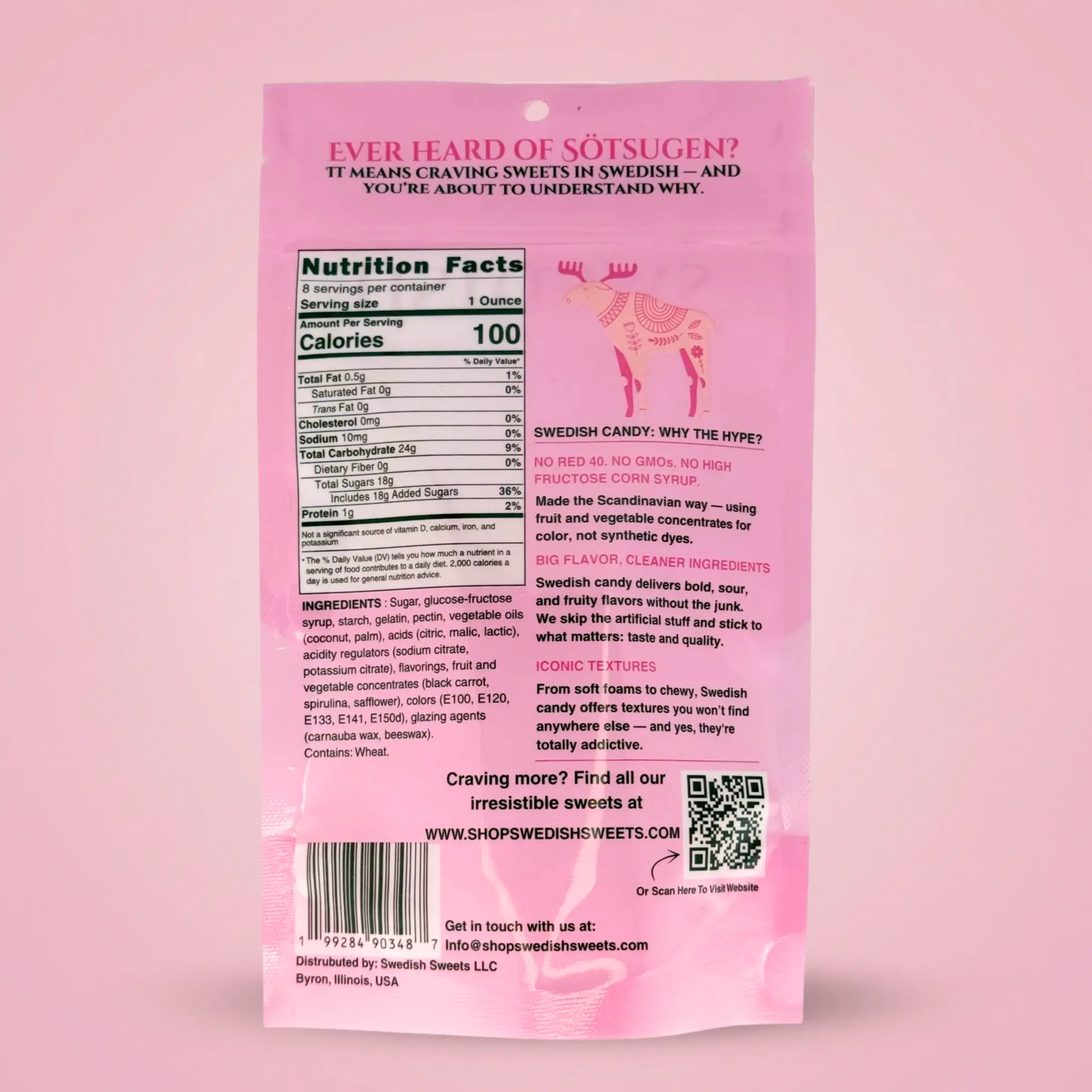 Each bag is packed with ½ lb (227 g) of sweet & sour goodness — beautifully presented in our signature pink Swedish Sweets bag.