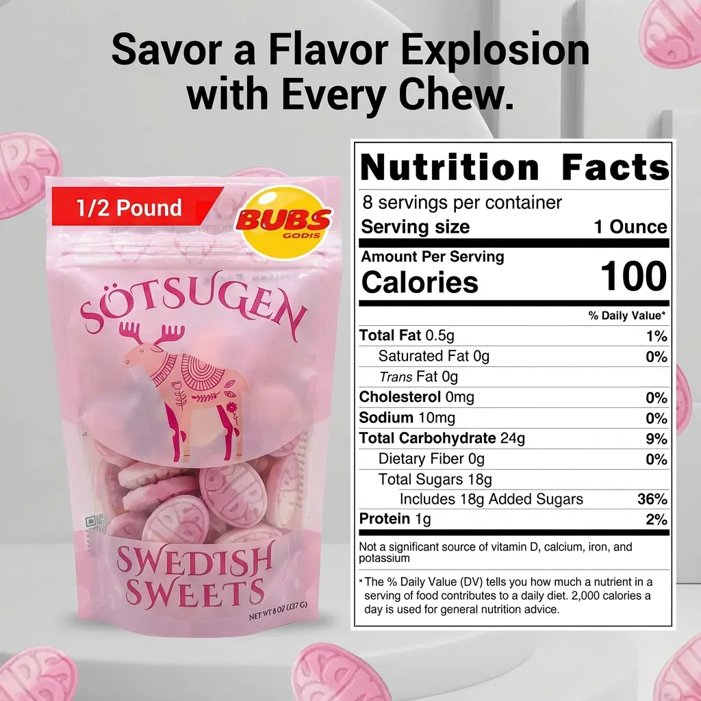 Get ready for a tangy adventure with BUBS Wild Strawberry Pomegranate Oval Swedish Candy!