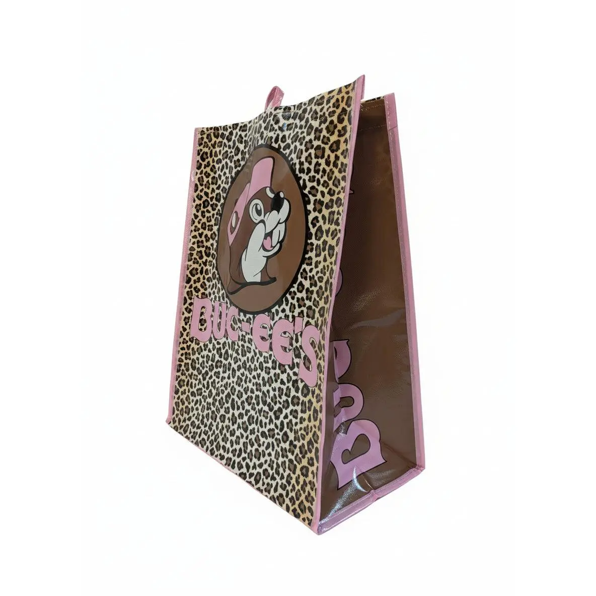 Stand out in style with the Buc-ee’s Pink Leopard Tote Bag! This fun and fashionable bag features Buc-ee’s iconic beaver mascot set against a bold leopard-print background with pink accents. Designed with durability in mind, it’s perfect for everyday errands, shopping trips, or hauling road-trip essentials from your favorite travel stop. Lightweight yet roomy, this tote adds a wild pop of personality to any adventure; whether you're headed to the beach, gym, or your next Buc-ee’s run.