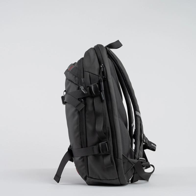 Spacious backpack with various compartments.