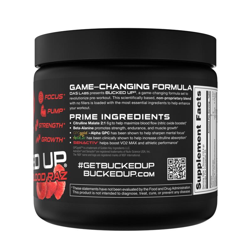 Energy. Focus. Pump. Power. Meet the formula that started it all — now in a 25-serving Blood Raz edition. Bucked Up Pre-Workout is built to fuel your grind with clean, clinical doses and zero proprietary blends. No fluff, no fillers — just performance you can feel from the very first scoop.