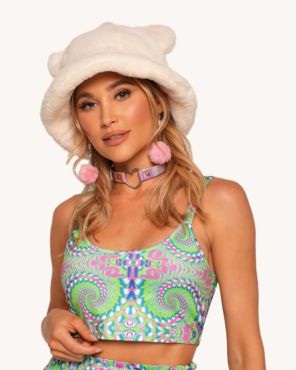 Add a playful twist to your look with the Cutesy Wootsy Bear Plush Bucket Hat! Choose from black or white to complete your adorable rave girl outfit.