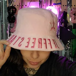 Characterized by its beautiful pink color, this hat offers a comfortable and secure fit, complemented by the expertly stitched name and star. A notable advantage is that it is not an iron-on, ensuring a durable design. Perfect for protecting one's eyes from the sun and providing sun protection. This hat boasts numerous benefits, including the beautifully stitched logo, protection of the head, eyes and not to mention just the fact if you luv bucket hats. It is also worth noting that the pink and blue versions are crafted from different materials, these hats are suitable for both men and women
