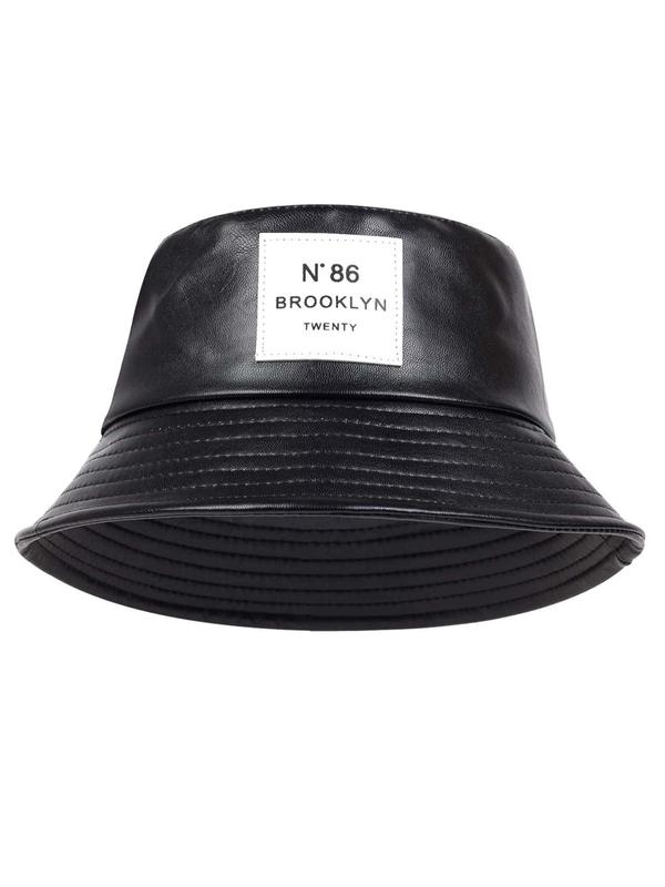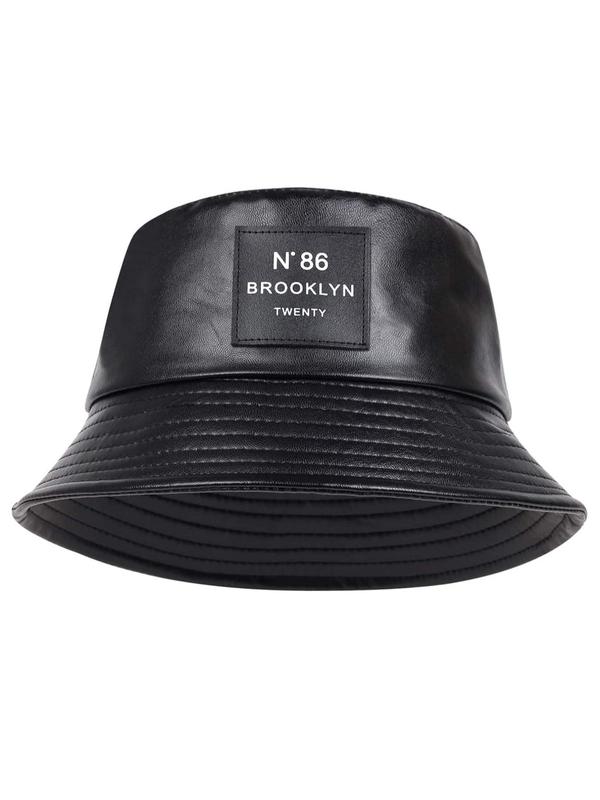 Minimalist Letter Patch Decor PU Leather Bucket Hat, Outdoor Sun Protection Fisherman Hat, Summer Beach Hat For Men & Women