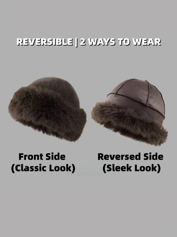 The hat has no brim, it’s like putting on a furry bonnet or skull cap