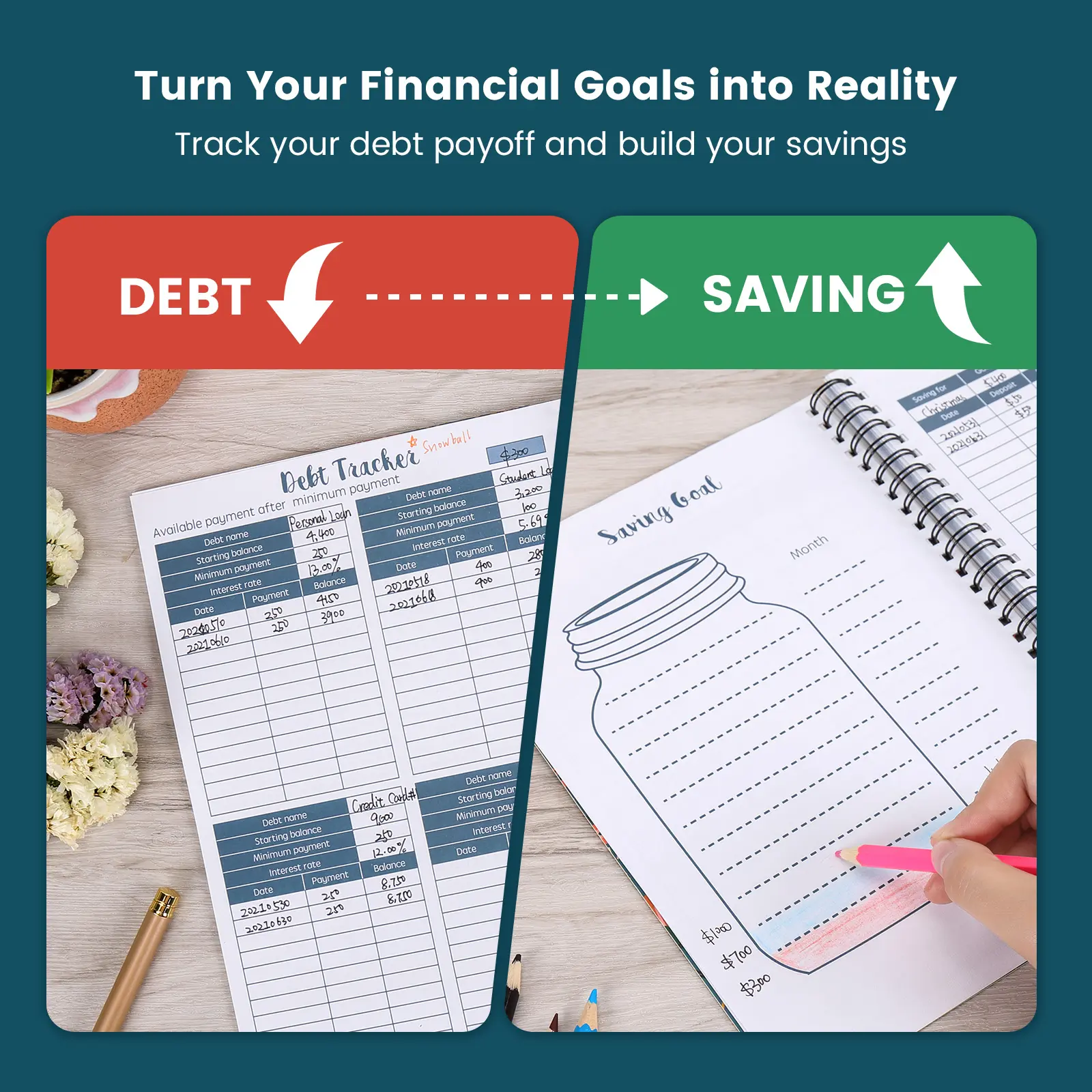 ·2 pages saving goal & 4-box saving tracker