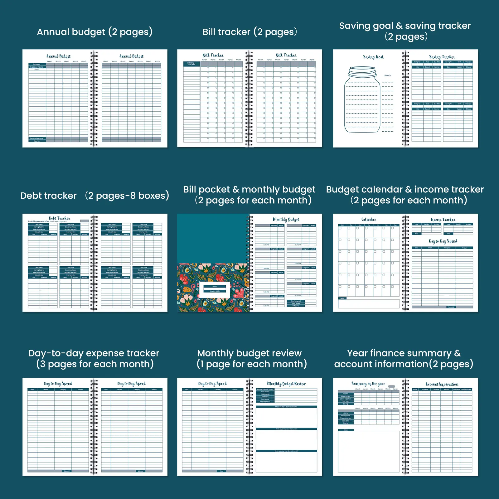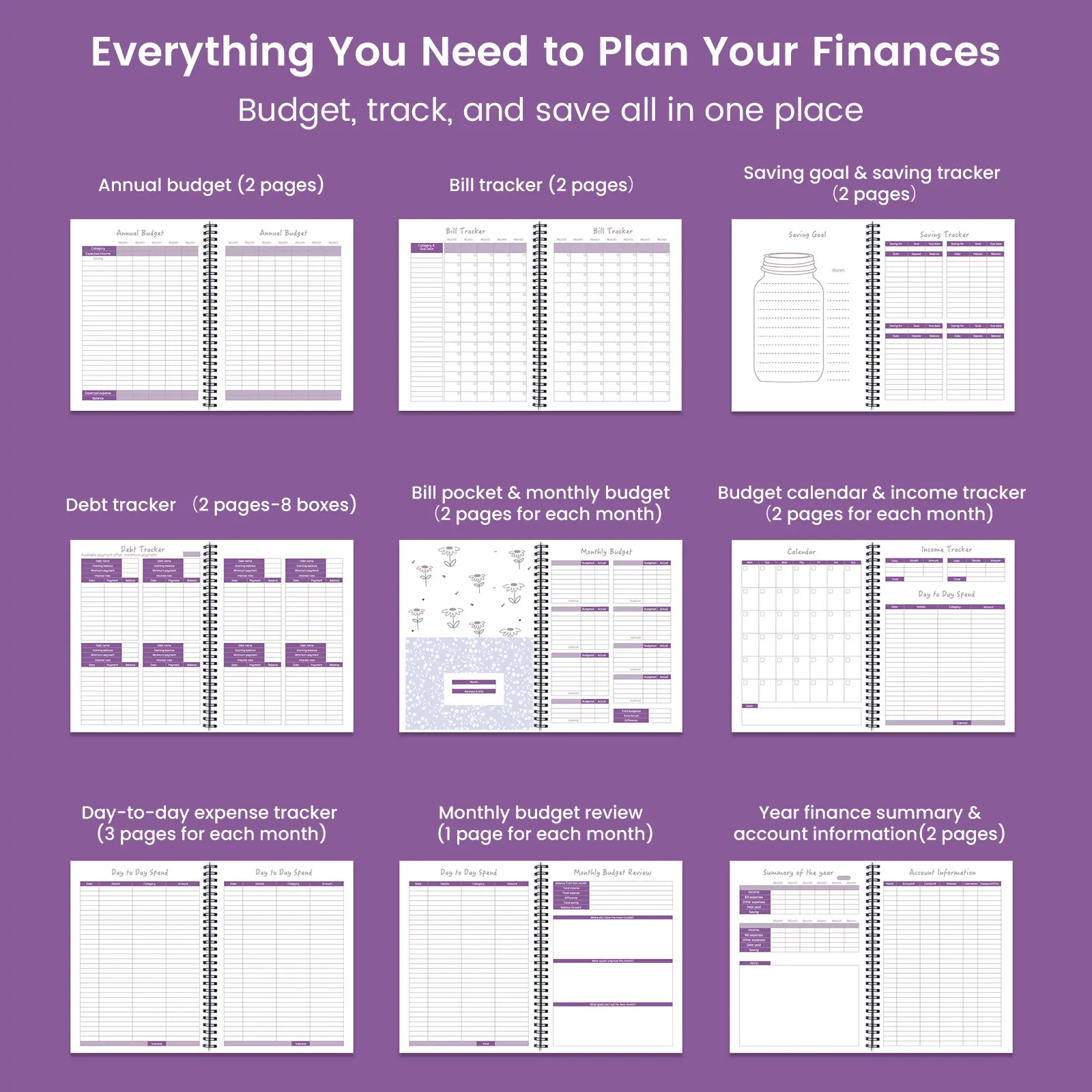 This notebook is your ultimate finance ally. It provides detailed tracking for monthly expenses, income, and savings. The 12-page bill calendar helps you manage bills throughout the year. Stay organized and on top of your finances with this efficient planner. Ideal for anyone looking to improve their budgeting skills.