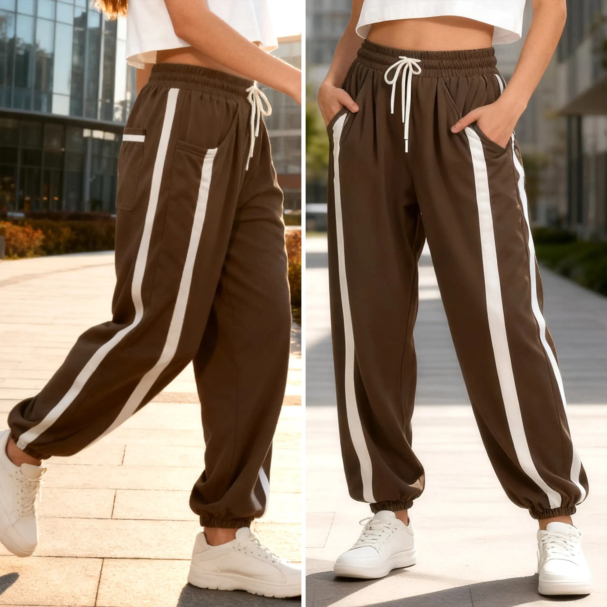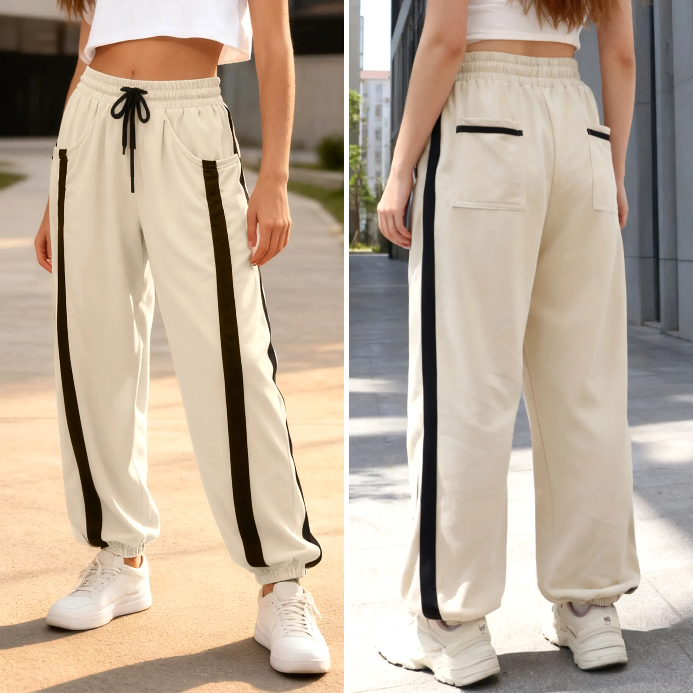 These colorblock sweatpants combine athletic energy and effortless streetwear vibes. The contrast side stripe design gives your outfit that sporty, slimming effect — perfect for casual days, running errands, or TikTok dances .