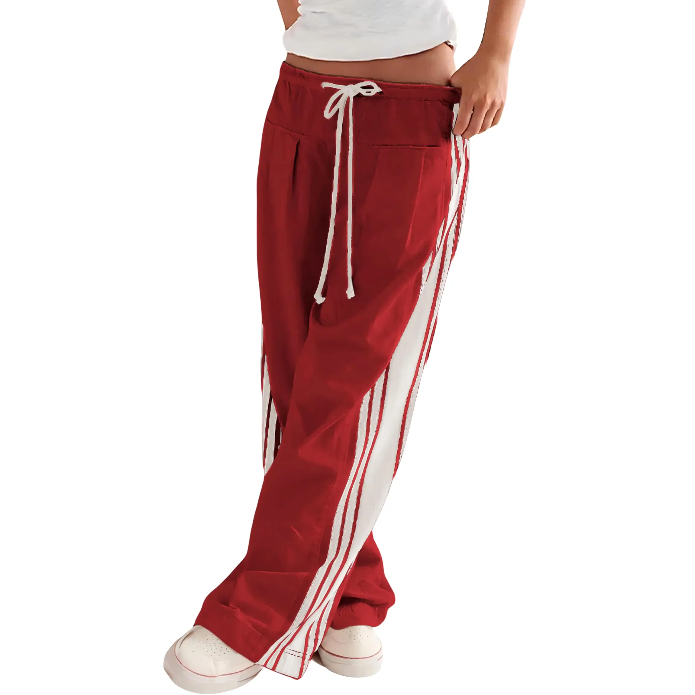 Buenoble Women's Wide Leg Side Stripe Pants Loose Fit High Waist Drawstring Track Pants Casual Streetwear Joggers