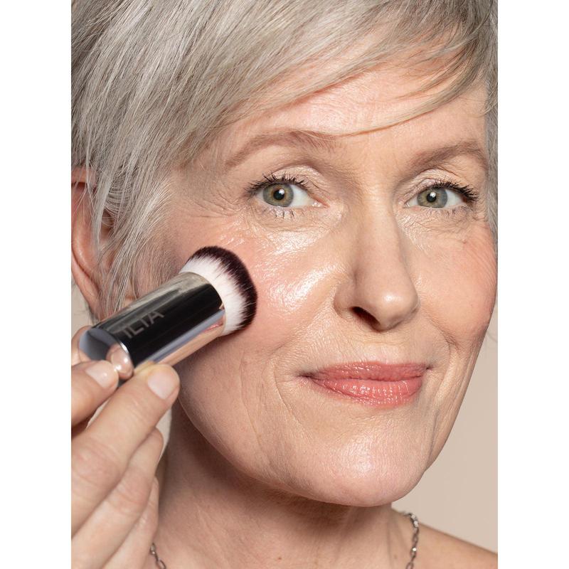 Our Perfecting Buff Brush is a versatile tool that helps set complexion products faster. The densely packed bristles buff and blend both cream and liquid formulas seamlessly into the skin, creating a smooth finish.