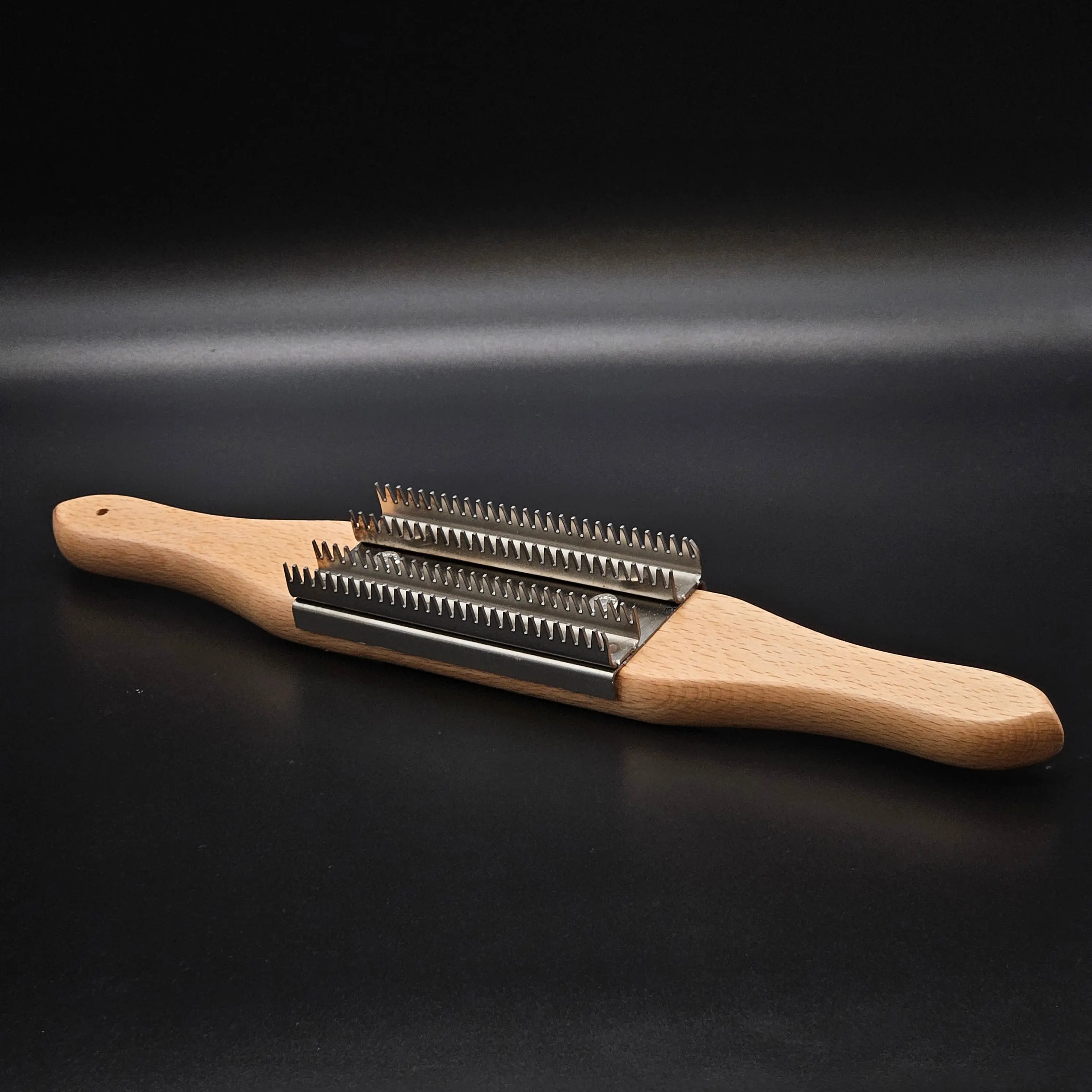 The Buff Rake is your go-to tool for "facing" your buffing wheel before applying compound. By removing buildup and refreshing the surface, it helps your buff hold compound more effectively and deliver a cleaner, smoother finish on your metal.
