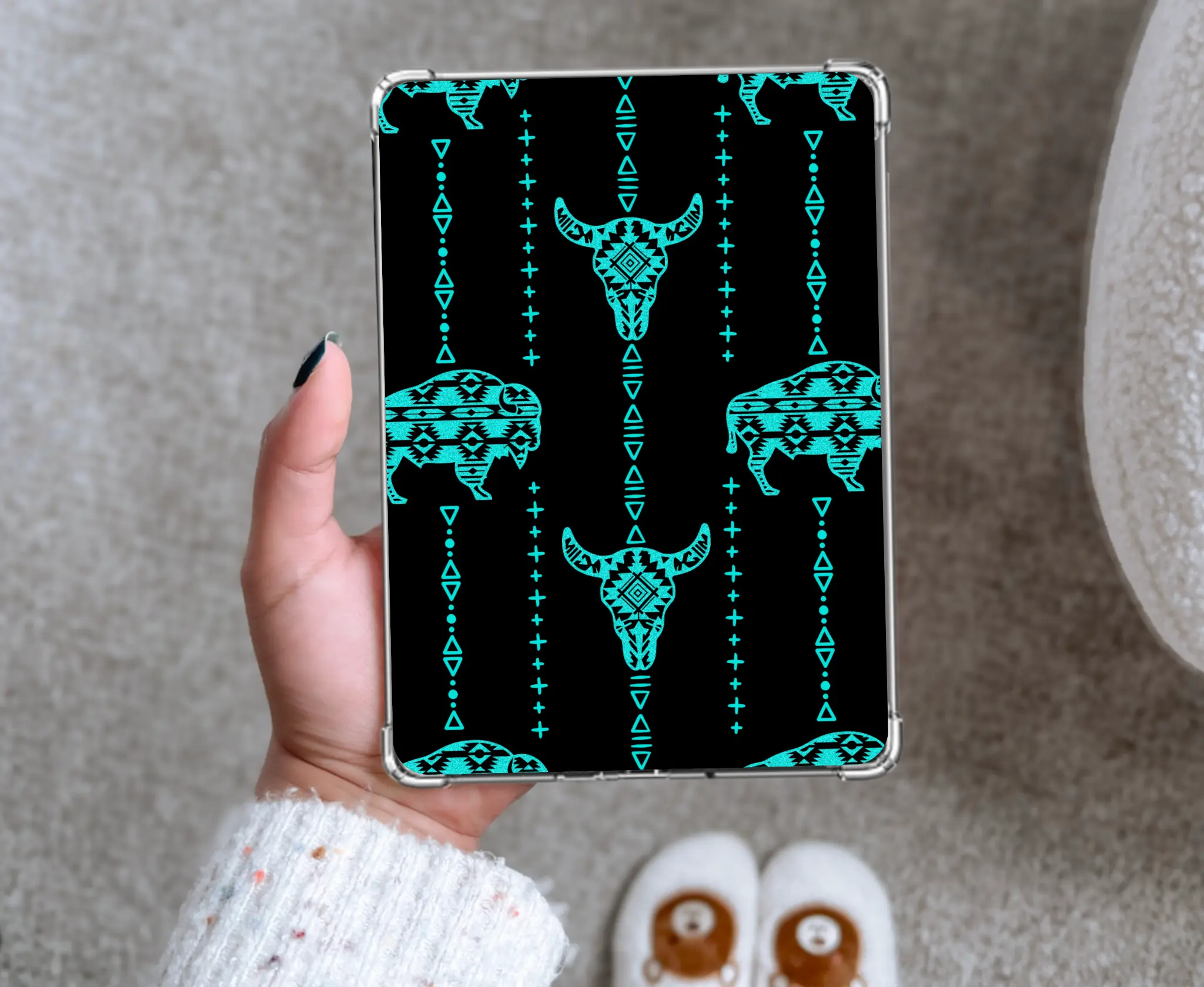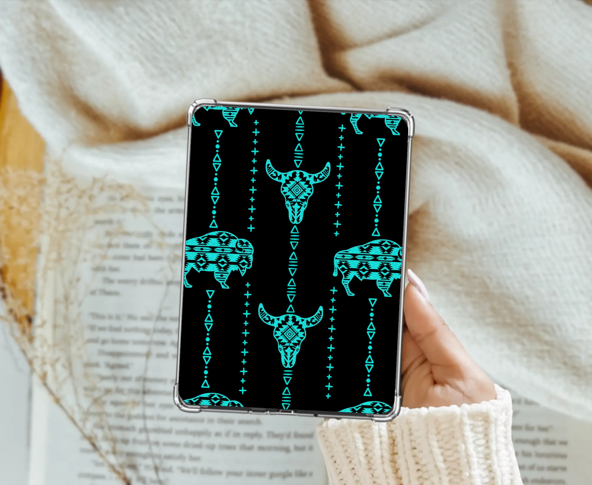 Elevate your e-reader's look with our charming "Buffalo Blues" card stock insert. This handmade design fits perfectly inside a clear case, covering the back of your Kindle. It's crafted with precision, ensuring a seamless fit. Add a touch of personality to your device with this unique guest check-inspired skin.