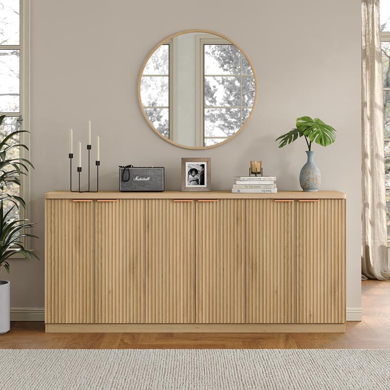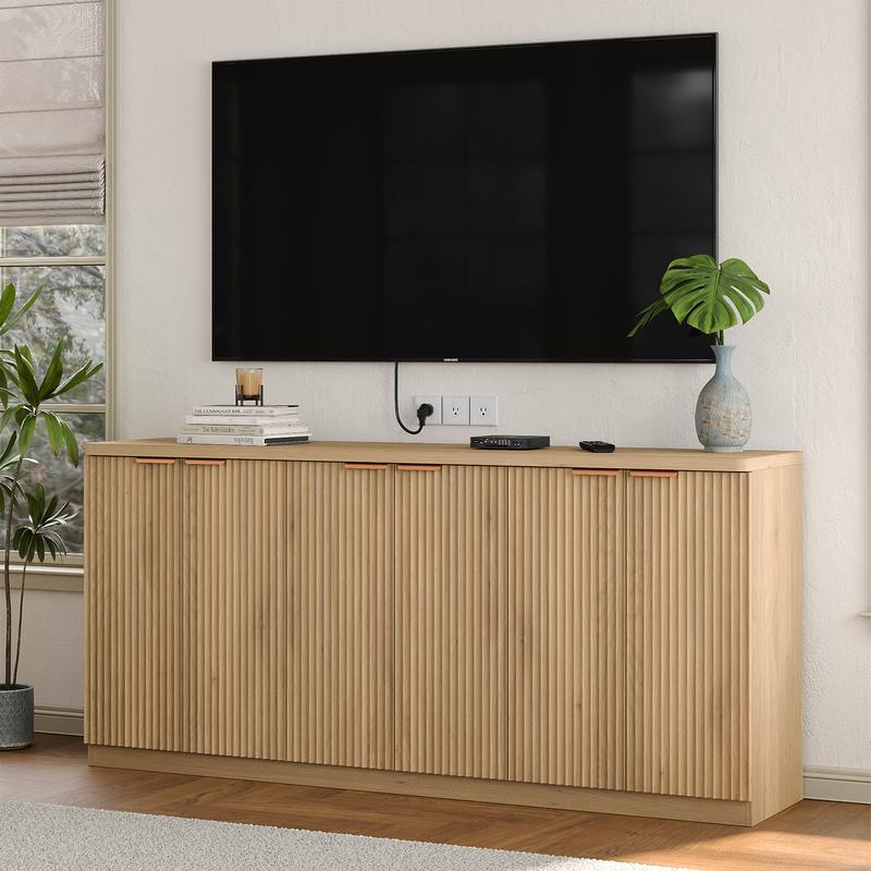 【Extraordinary Storage Space】- Overall dimensions: 15.6"D x 70"W x 34.1"H. This buffet cabinet offers significantly more storage space compared to standard models, making it perfect for storing your dining essentials, serving utensils, and decorative items. Its spacious interior provides ample room for organizing and tidying up your dining area or kitchen. Enjoy ample space for dishes, glassware, and more in this larger-than-average buffet cabinet.
