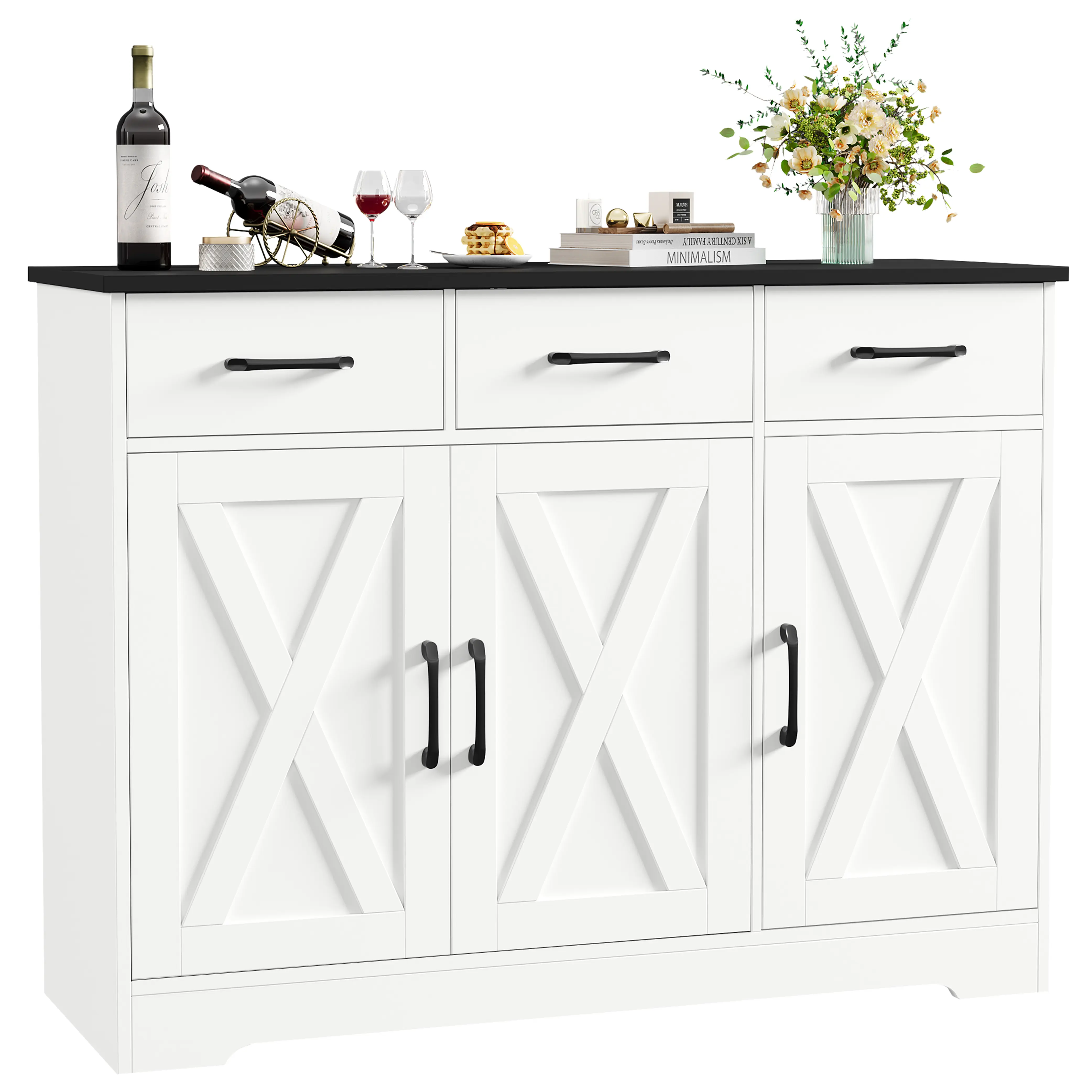 - Farmhouse Sideboard: Keeps tableware organized.