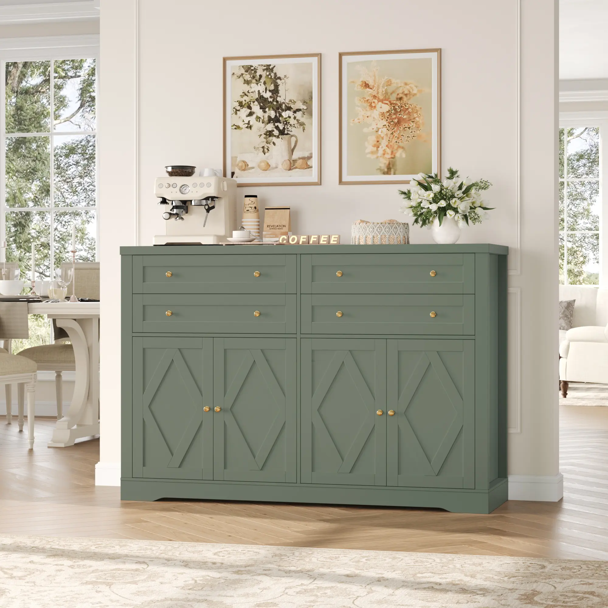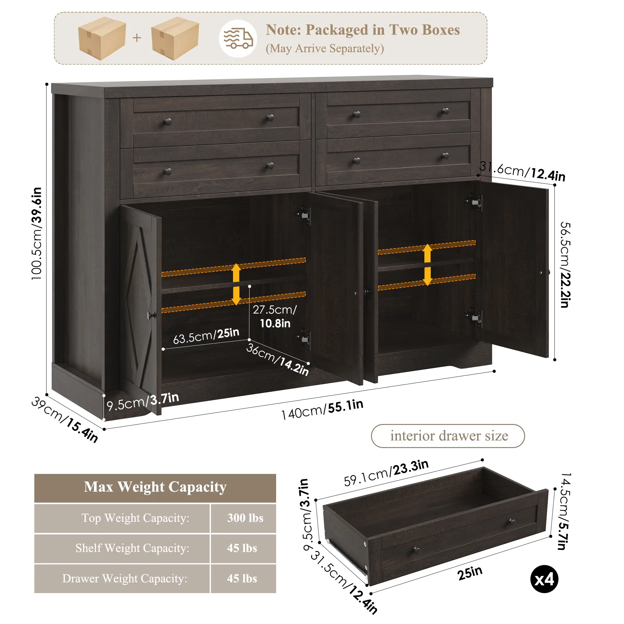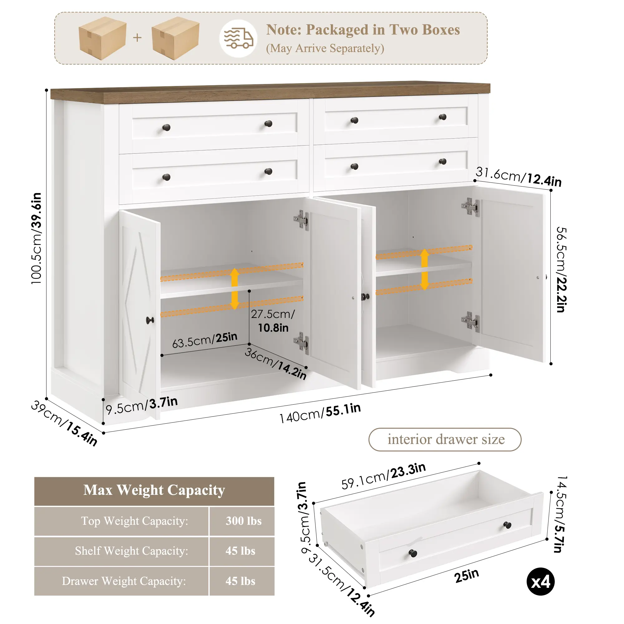 【2 Packages Shipping】HOSTACK Buffet Cabinet with 4 Large Drawers