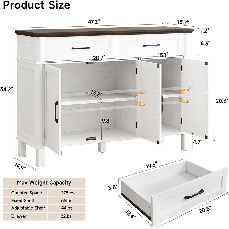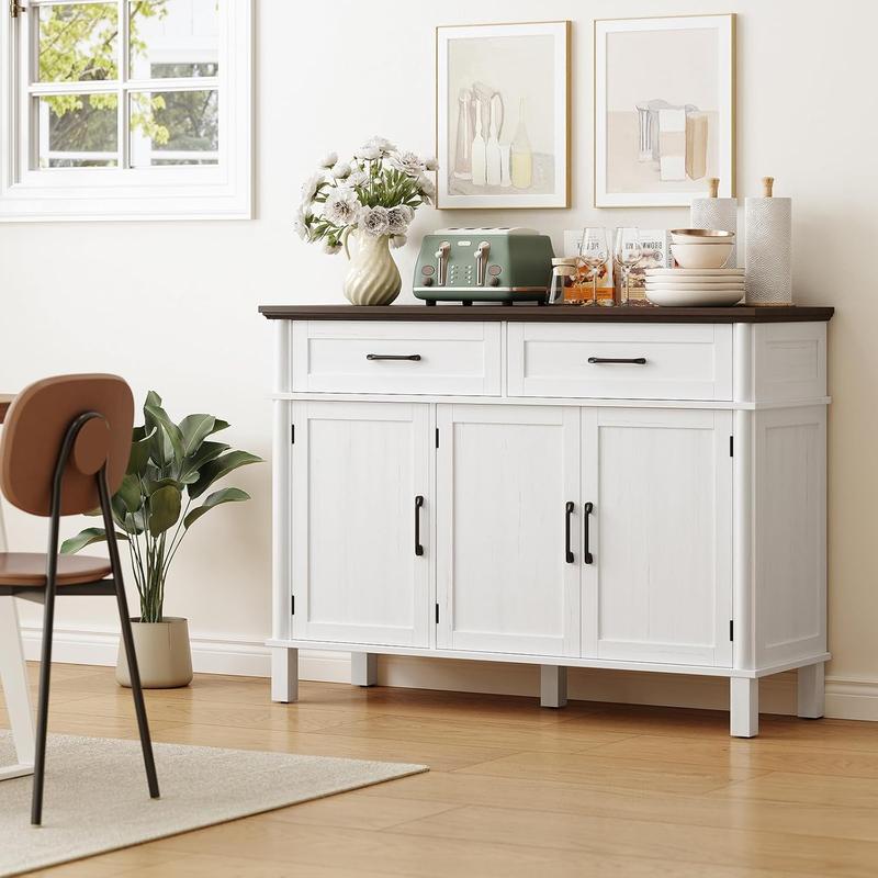 【Valentine's Day gift】ONBRILL 48 Inches Buffet Cabinet with Storage, Farmhouse Sideboard Buffet w/2 Drawers and 3 Doors, Wood Coffee Bar Cabinet with Adjustable Shelves, Sideboard Storage for Kitchen, Living Room