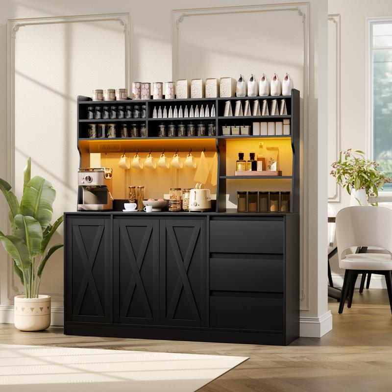 Buffet Sideboard Cabinet w/Power Outlets & LED Light, Large Kitchen Hutch Cabinet w/3 Drawers, Microwave Stand, Adjustable Shelves & 7 Cup Holders, Pantry Cupboard w/DoorsBuffet Sideboard Cabinet w/Power Outlets & LED Light, Large Kitchen Hutch Cabinet w/3 Drawers, Microwave Stand, Adjustable Shelves & 7 Cup Holders, Pantry Cupboard w/DoorsBuffet Sideboard Cabinet w/Power Outlets & LED Light, Large Kitchen Hutch Cabinet w/3 Drawers, Microwave Stand, Adjustable Shelves & 7 Cup Holders, Pantry Cupboard w/DoorsBuffet Sideboard Cabinet w/Power Outlets & LED Light, Large Kitchen Hutch Cabinet w/3 Drawers, Microwave Stand, Adjustable Shelves & 7 Cup Holders, Pantry Cupboard w/Doors