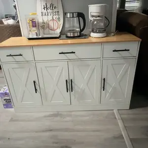 This gave me the extra space that I needed for my coffee bar & toater , toaster oven not to mention the drawers & cabinets . I love it & so simple to put together plus they send extra screws & things . Awesome price ❤️❤️
