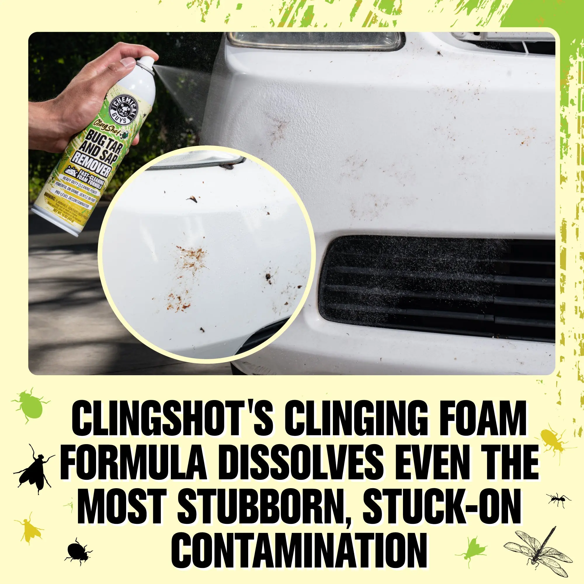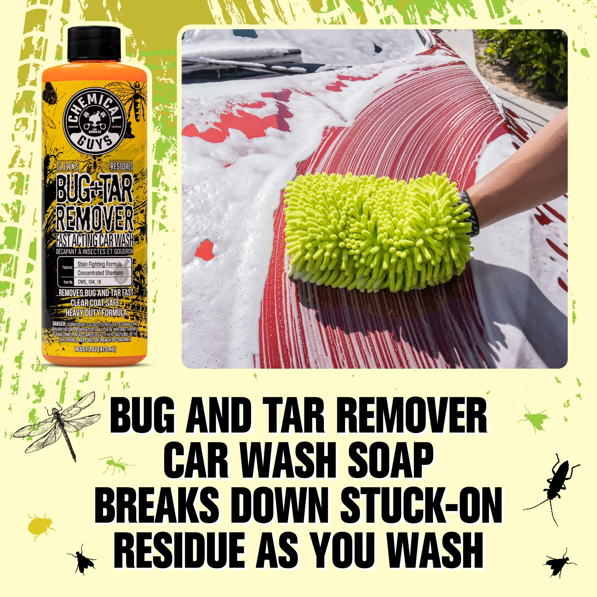 Say goodbye to stubborn, stuck-on messes with this kit that combines a thick, clinging foam cleaner with a powerful car wash soap, both specially formulated to remove bugs, road tar, and road grime with ease.
