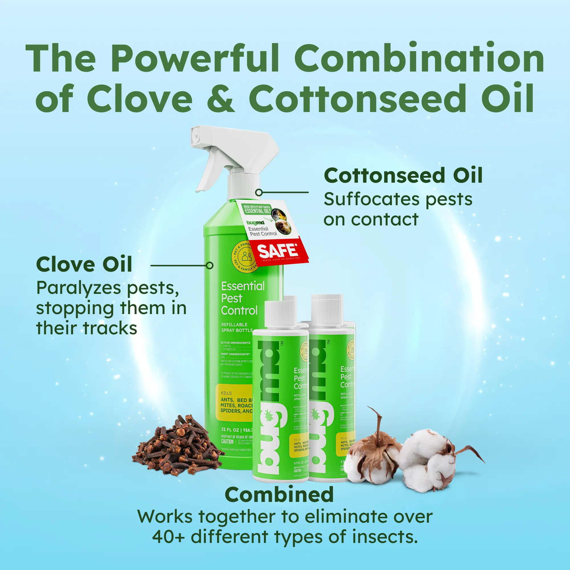 ·Made with plant-derived oils like cottonseed and clove; formulated without traditional harsh chemical pesticides when used as directed.