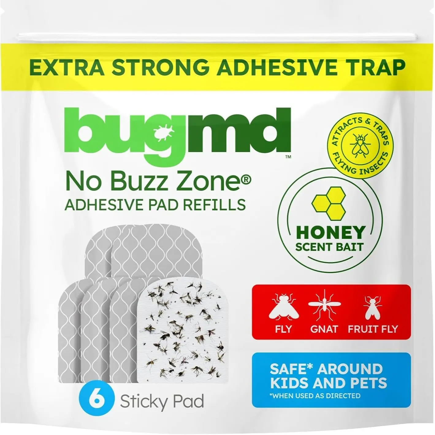 BugMD No Buzz Zone Refiller Pad (6 Refills) - Extra-Strong Adhesive Traps, Indoor Insect Trap Refill, No Harsh Chemicals, Household Friendly, Fly Trap Refill, Flea Trap Refills, Bug Trapper