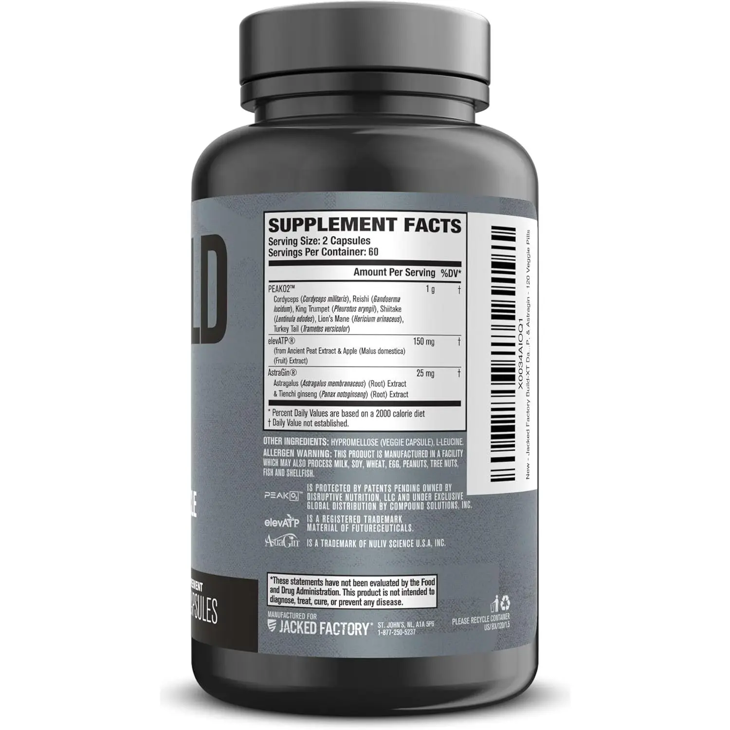 No Miracle, Just Maximization: Build-XT is a powerful supplement that amplifies your efforts in the gym.Remember, no supplement can replace effective training and nutrition, but Build-XT empowers you to push your limits, leading to enhanced muscular gains when combined with your hard work and dedication.Unlock Peak Performance: Elevate your workouts with Build-XT, powered by Peak02 mushroom complex.This adaptogenic marvel enhances endurance, allowing you to push your limits and train harder.Fuel Your Cells: ElevATP, the secret behind Build-XT, stimulates ATP production which is your primary cellular energy source.Experience improved athletic performance, strength, and lean muscle gains, while achieving your body composition goals.Achieve Your Fitness Goals: Build-XT is your ticket to a stronger, leaner, and more powerful physique.Peak02 & ElevATP’s muscle-building properties combined with AstraGin’s absorption support make this supplement a must-have for your fitness journey.Manufactured in a cGMP-Certified Facility: Unlike many dietary supplements, all products are manufactured under stringent quality control standards to ensure proper purity and potency. This formula is completely free of harsh chemicals, fillers, and artificial food dyes.