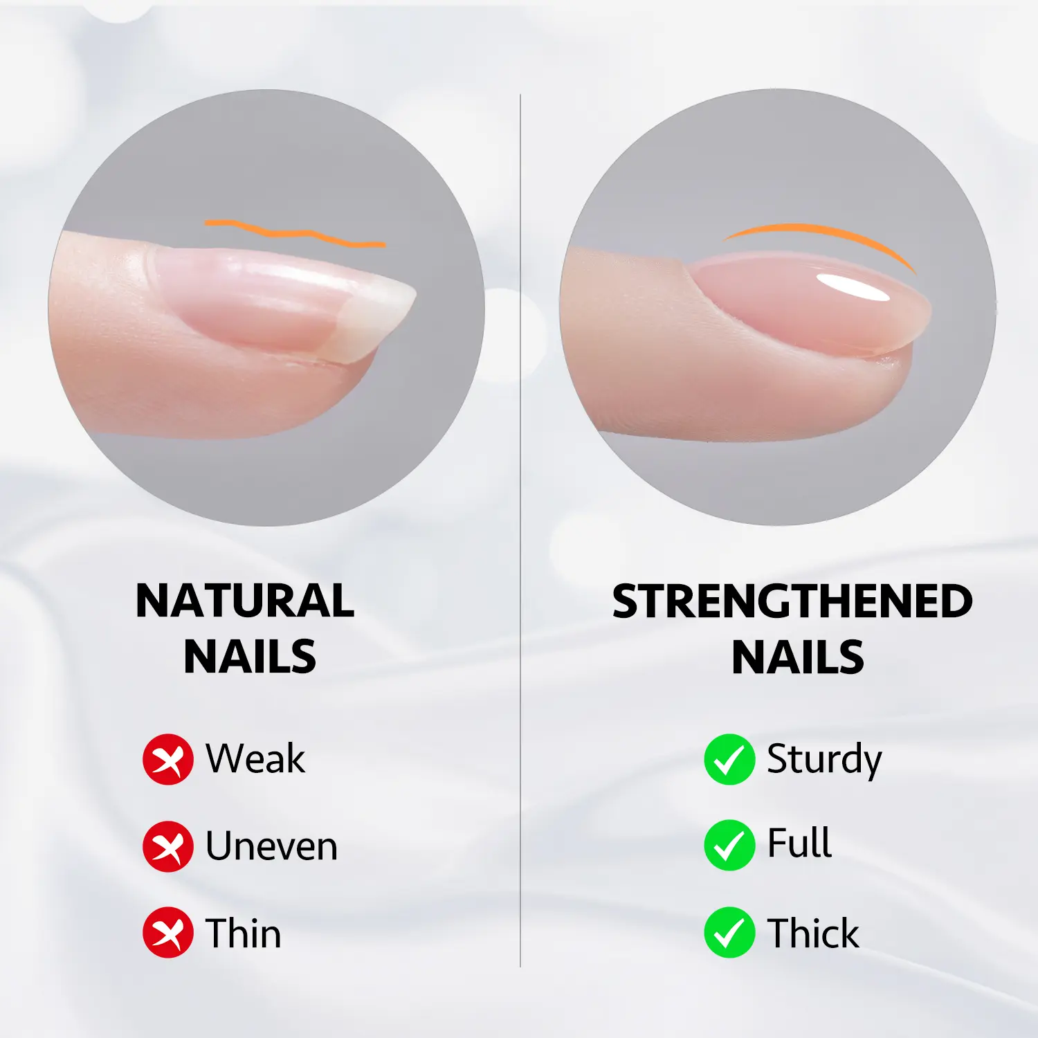 • Proper nail prep matters Lightly buff nails, remove cuticle residue, and clean off oil or dust before applying.