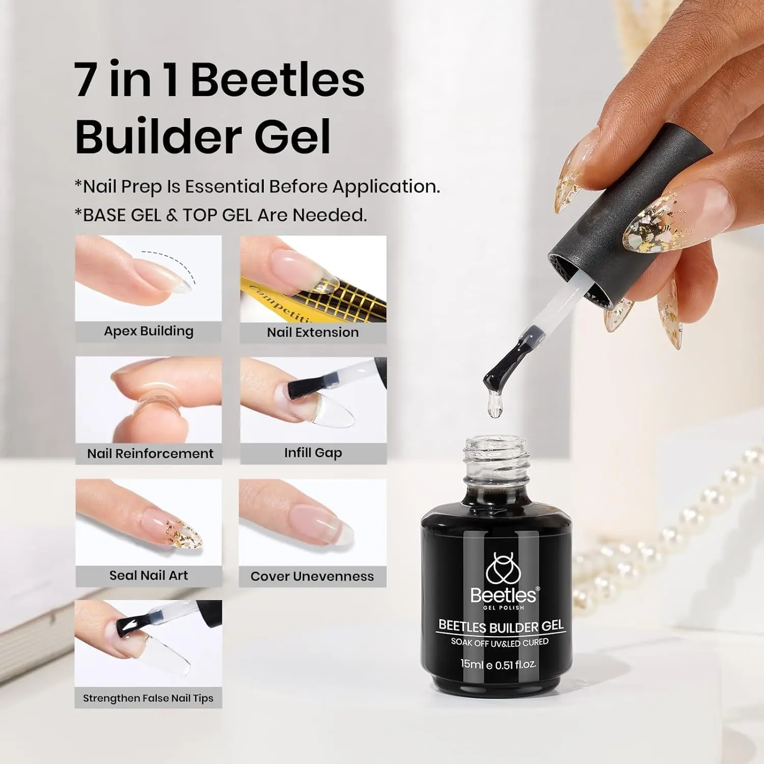 Beetles Hema Free Builder Gel for Nails 7 in 1 Nail Builder Strengthener Gel Clear Color Builder Extension Nail Gel for Holiday Nail Art Design for Girls Polish Cutics #TikTokShopBacktoSchool