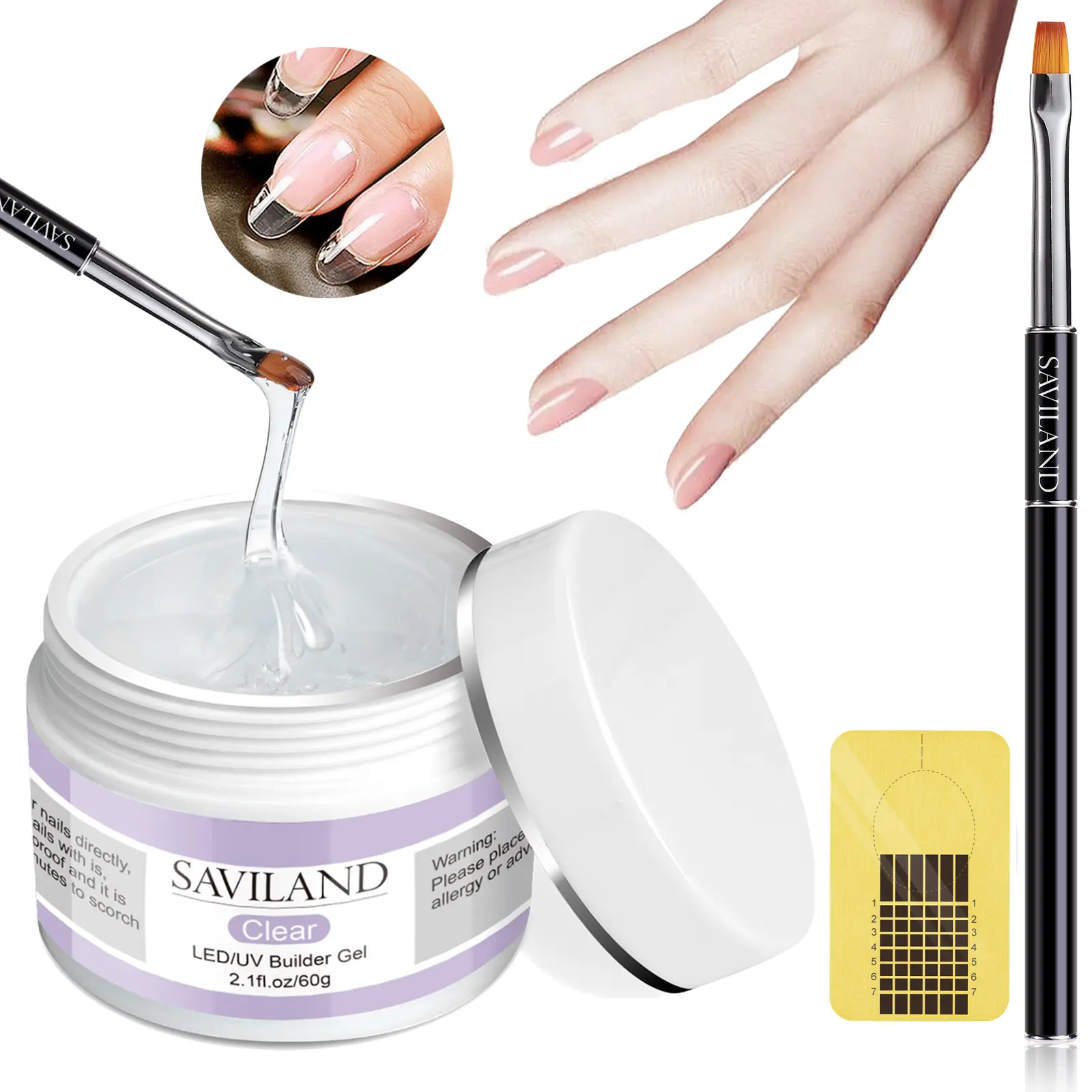 ·BUILDER NAIL GEL FOR NAILS: The SAVILAND Builder Nail Gel Kit includes 1 clear builder gel, 1 builder brush, and 100 nail forms. This nail extension gel set provides strong, flexible, and lightweight results, perfect for beginners to create stylish and durable nail designs.