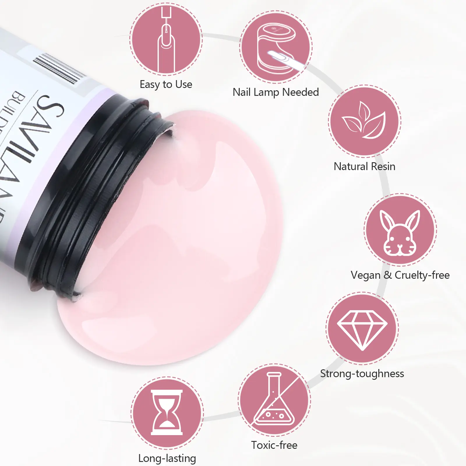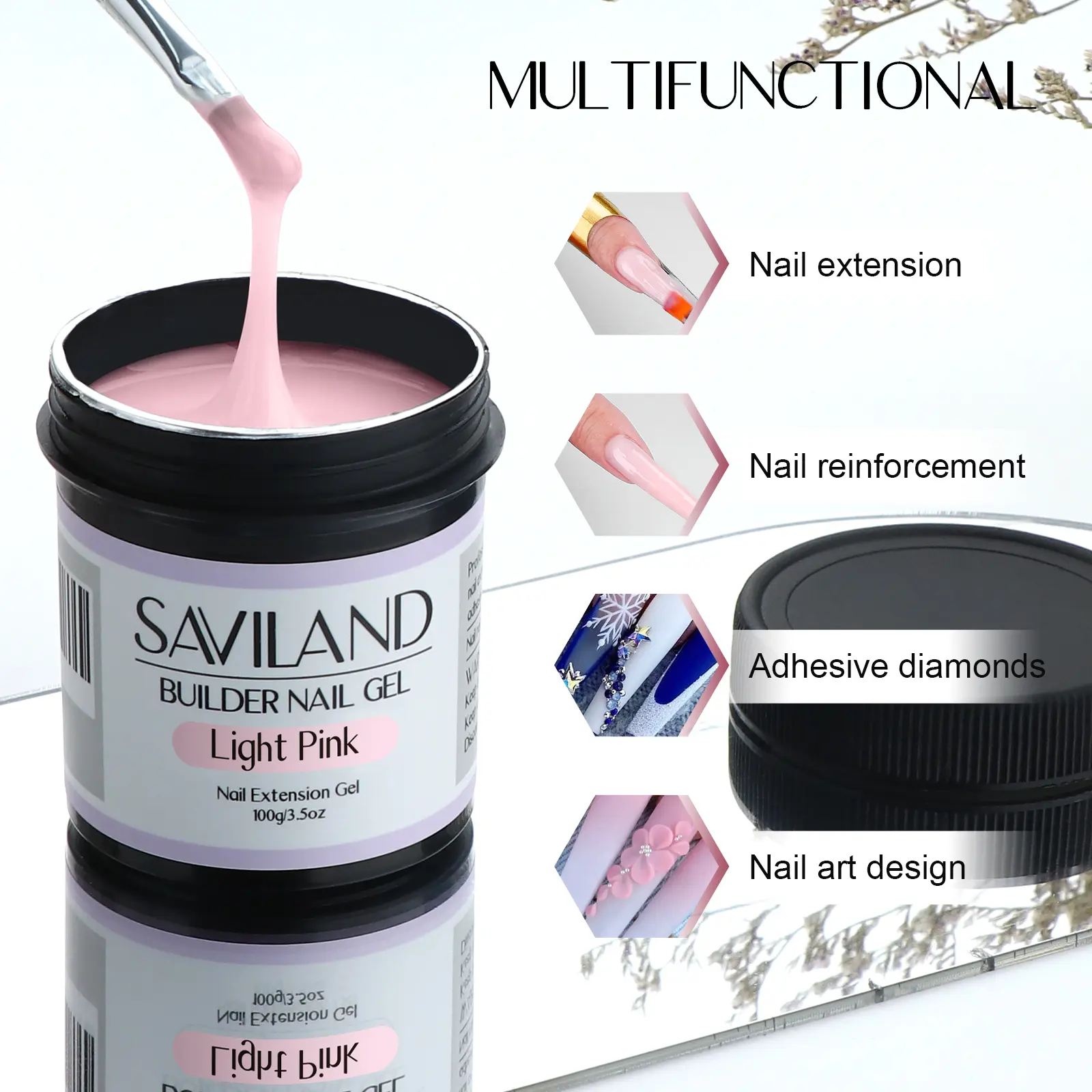 MULTI-FUNCTIONAL NAIL BUILDER GEL:SAVILAND soak-off builder gel can be used with nail forms to build strong and natural-looking nail extensions with smooth edges. It can also be used to secure sequins, rhinestones, and other nail decorations, or to create creative 3D nail art effects such as water ripples, shell textures, and dimensional designs.