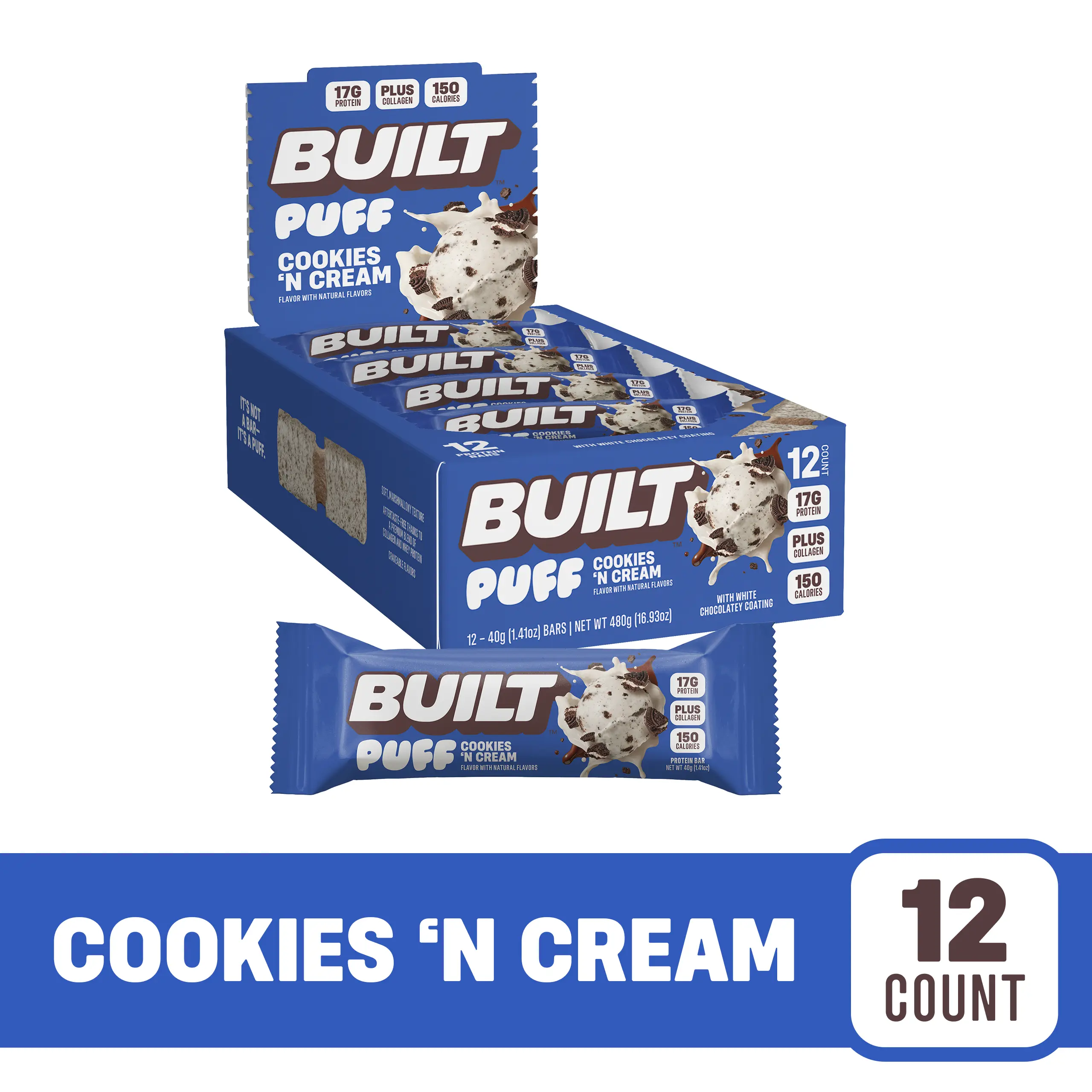 ·Protein Packed: Enjoy 17g of high-quality protein in each protein bar. Fuel your active lifestyle and support muscle growth and recovery with BUILT Puff.