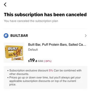 This subscription has been canceled because I don’t like the taste, I taste the salt but not the carmel. Anyway don’t subscribe to this because then you won’t be able to cancel. I’ve cancelled this subscription and continue to receive and get charged for this item monthly. I’ve reached out to TikTok shop and built bar repeatedly with no help.