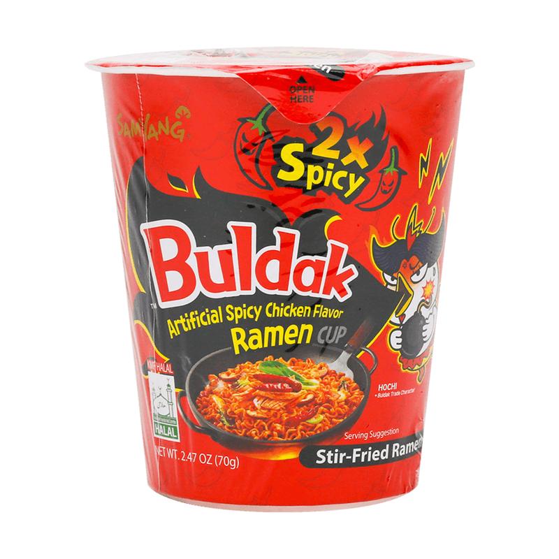 SAMYANG Korean Buldak Noodles Chicken Flavor Cup Ramen, 2 Hot Spicy*2 & Spicy Flavor*2,9.88oz【Value Pack】